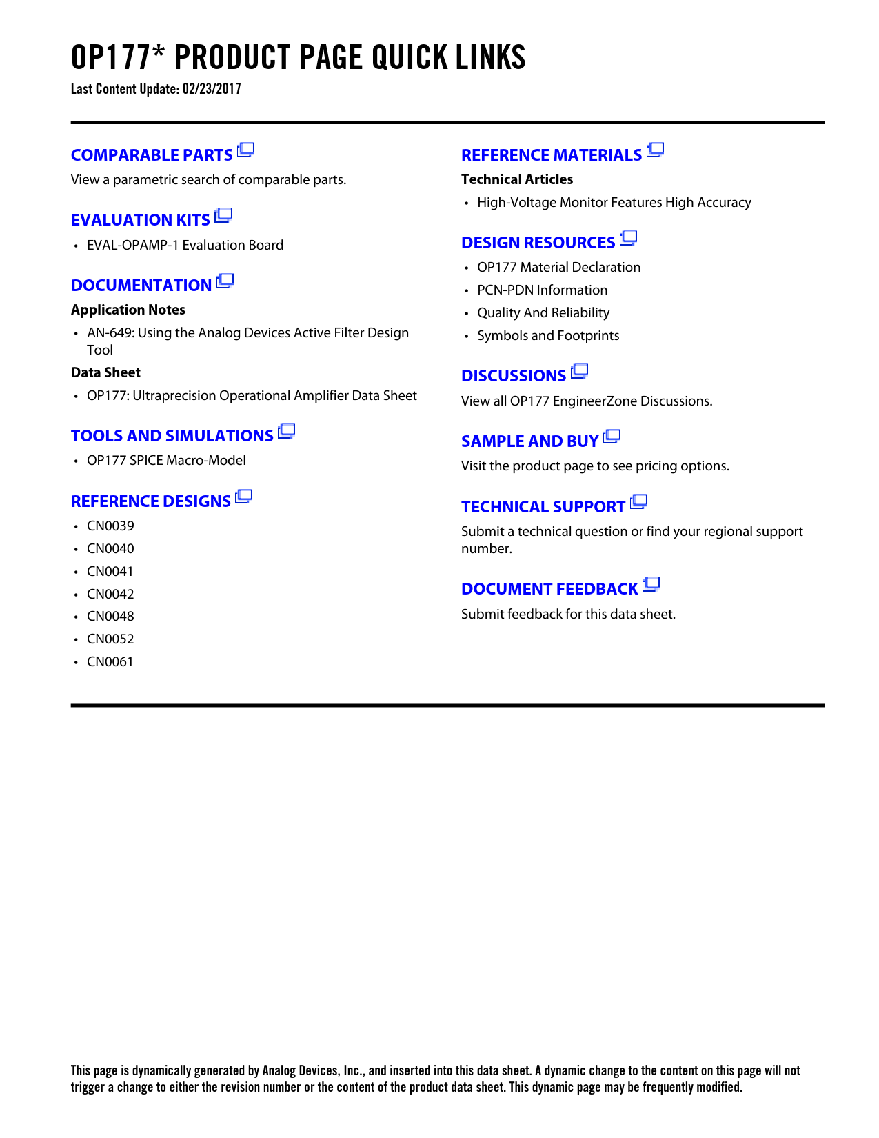 Páginas / Página17 / 2 — OP177* PRODUCT PAGE QUICK LINKS Last Content Update: 02/23/2017. …