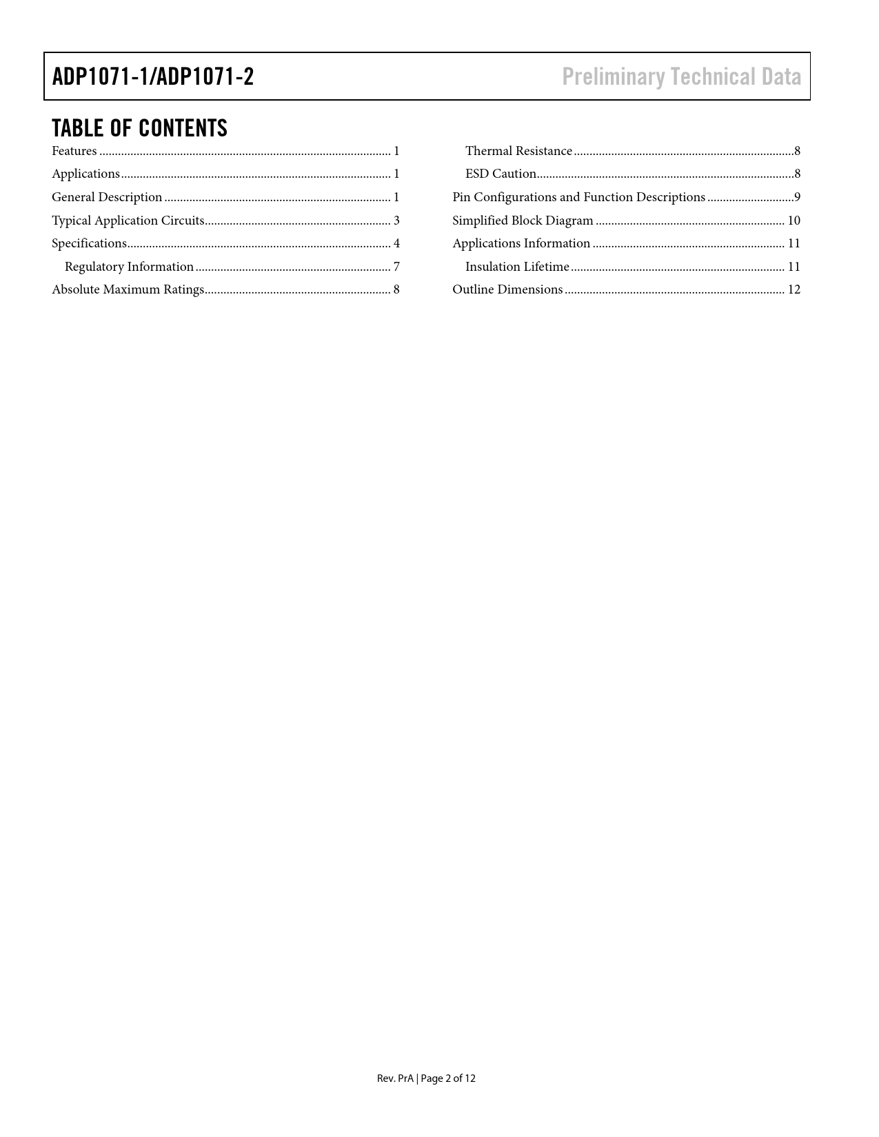 Páginas / Página12 / 2 — ADP1071-1/ADP1071-2. Preliminary Technical Data. TABLE OF CONTENTS