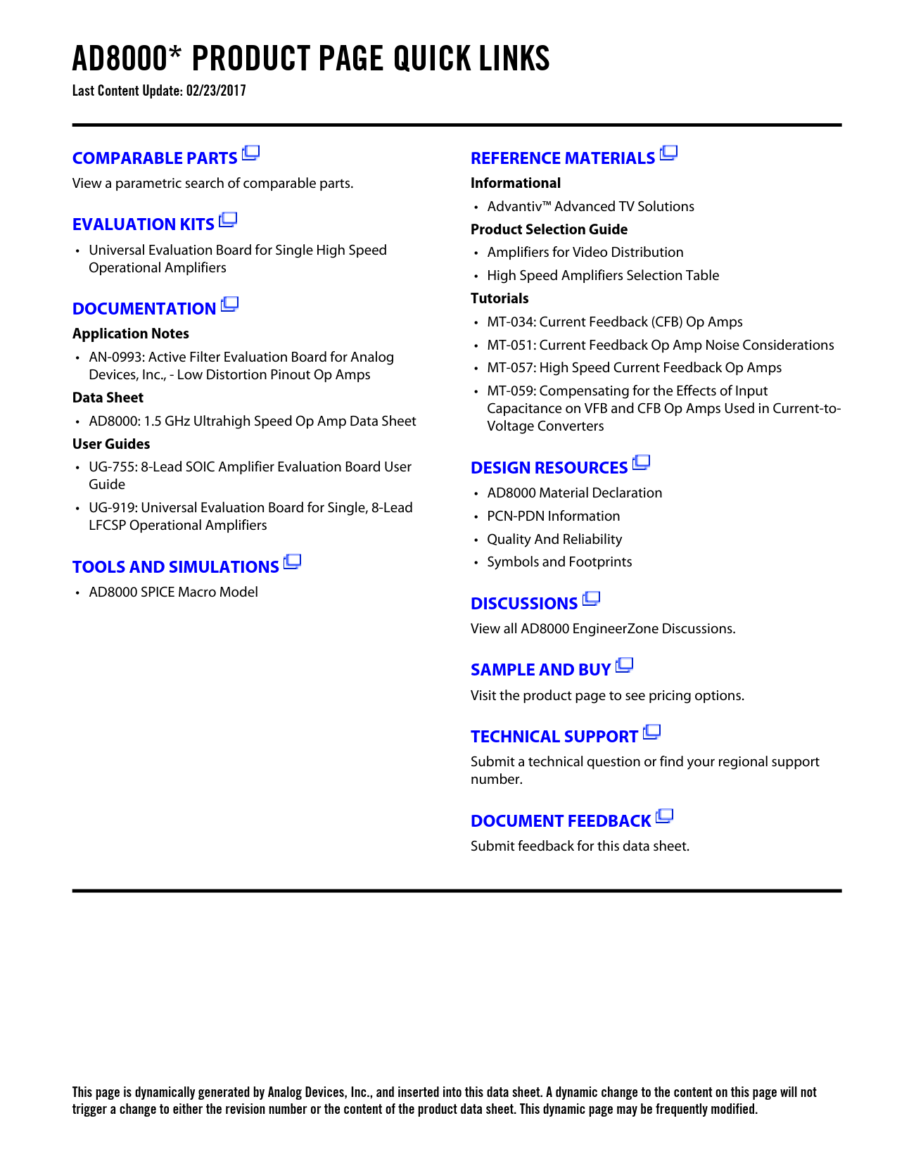 This page is dynamically generated by Analog Devices, Inc., and inserted into this data sheet. A dynamic change to the content on this page will not trigger a change to either the revision number or the content of the product data sheet. This dynamic page may be frequently modified.