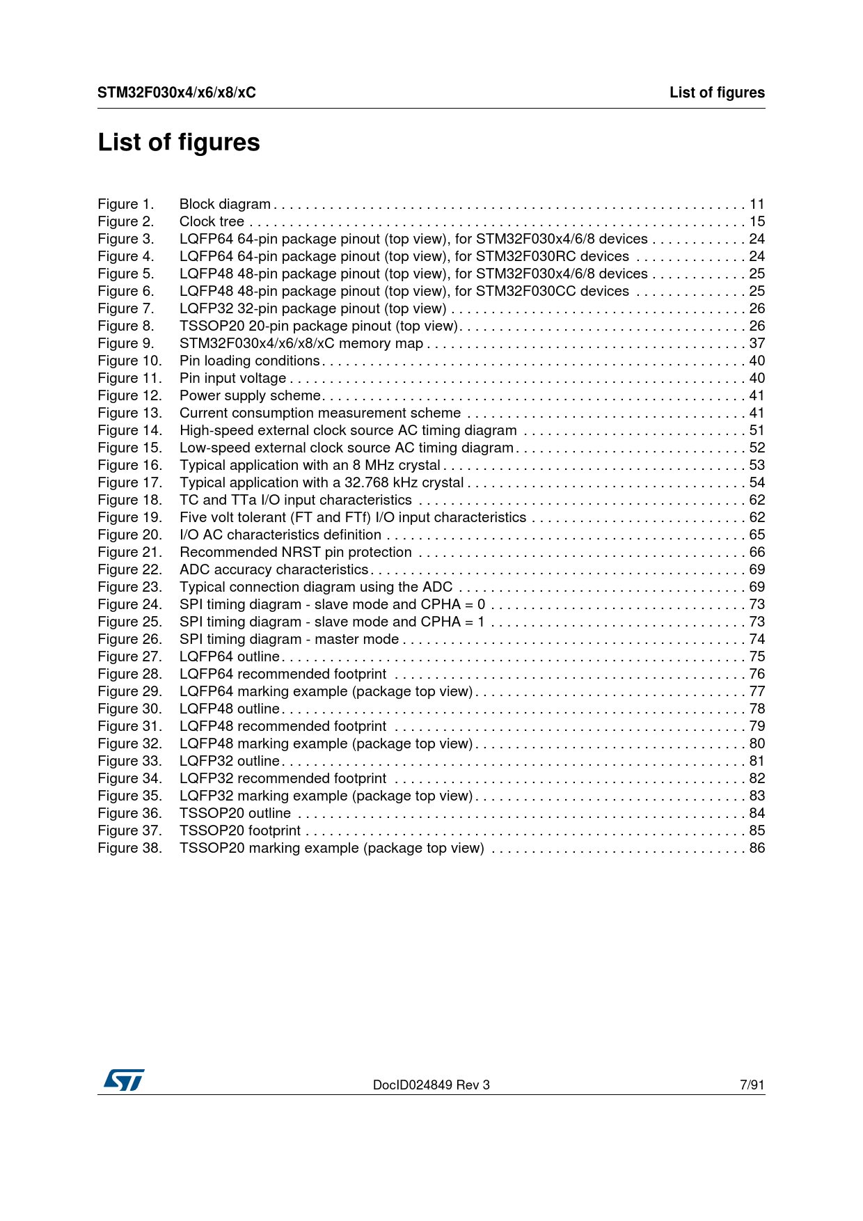 | Páginas / Página | 91 / 7 — STM32F030x4/x6/x8/xC. List of figures |