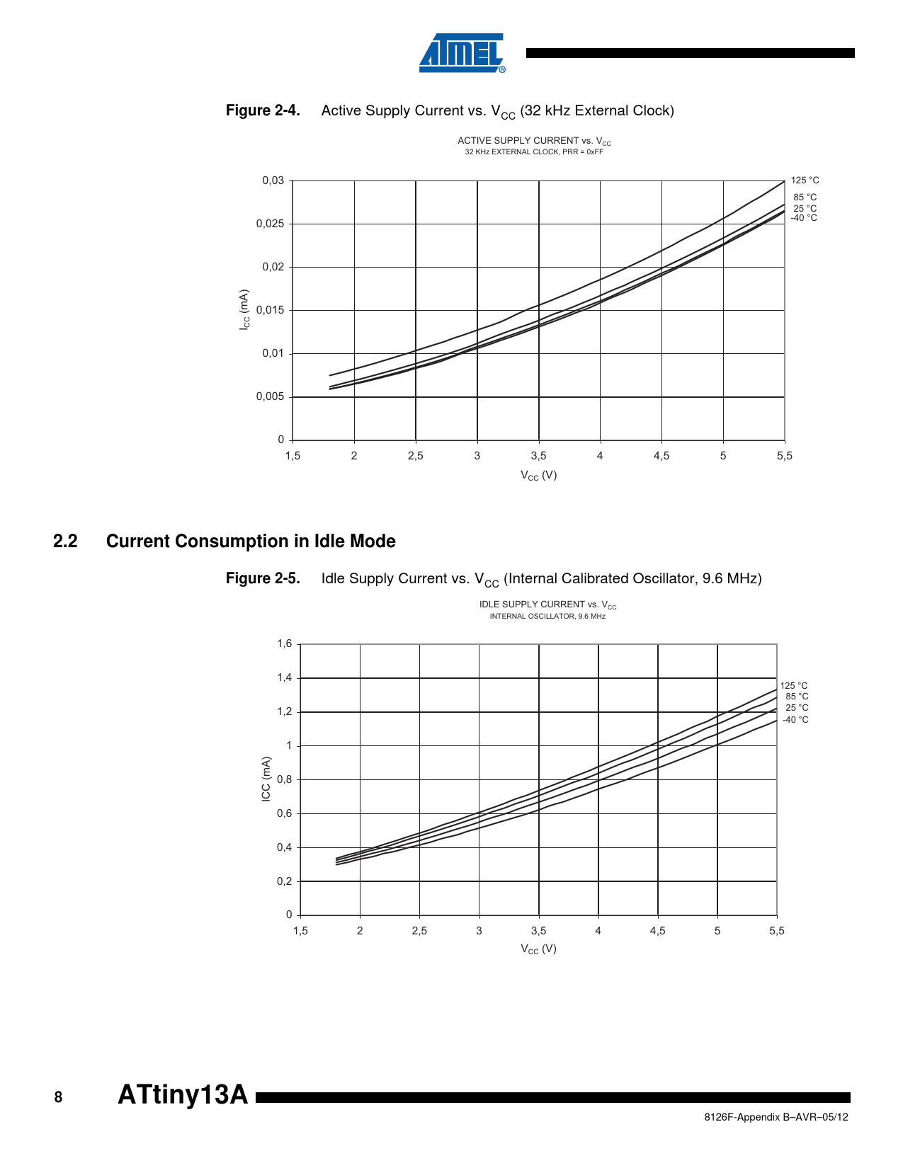 Figure 2-4 2.2 Current Consumption in Idle Mode Figure 2-5 ATtiny13A