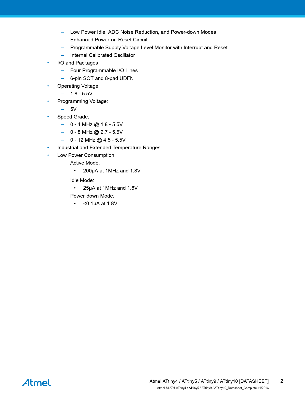 Datasheet ATtiny4, ATtiny5, ATtiny9, ATtiny10. Complete Datasheet (Microchip) - 2