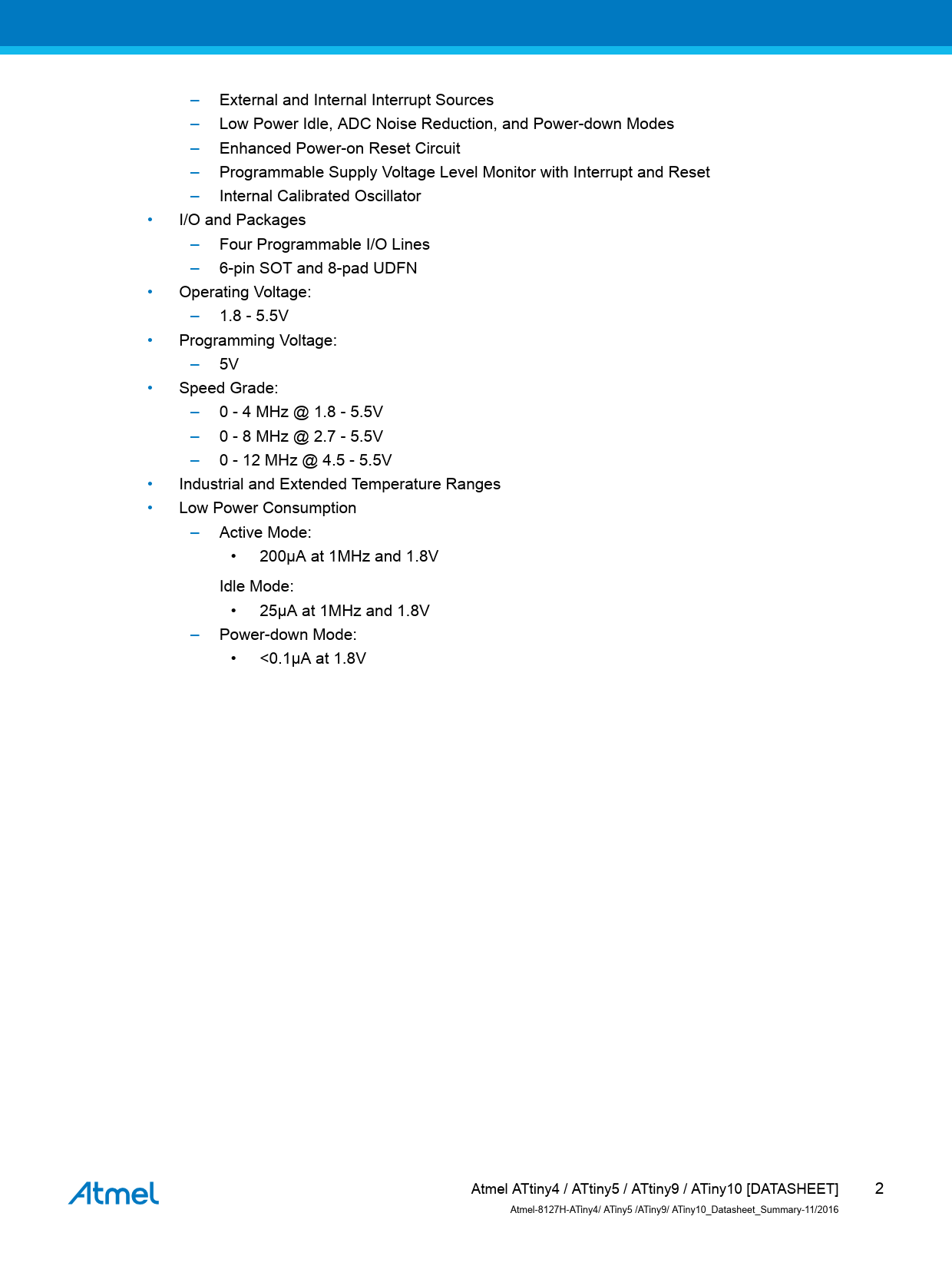Datasheet ATtiny4, ATtiny5, ATtiny9, ATiny10. Summary Datasheet (Microchip) - 2