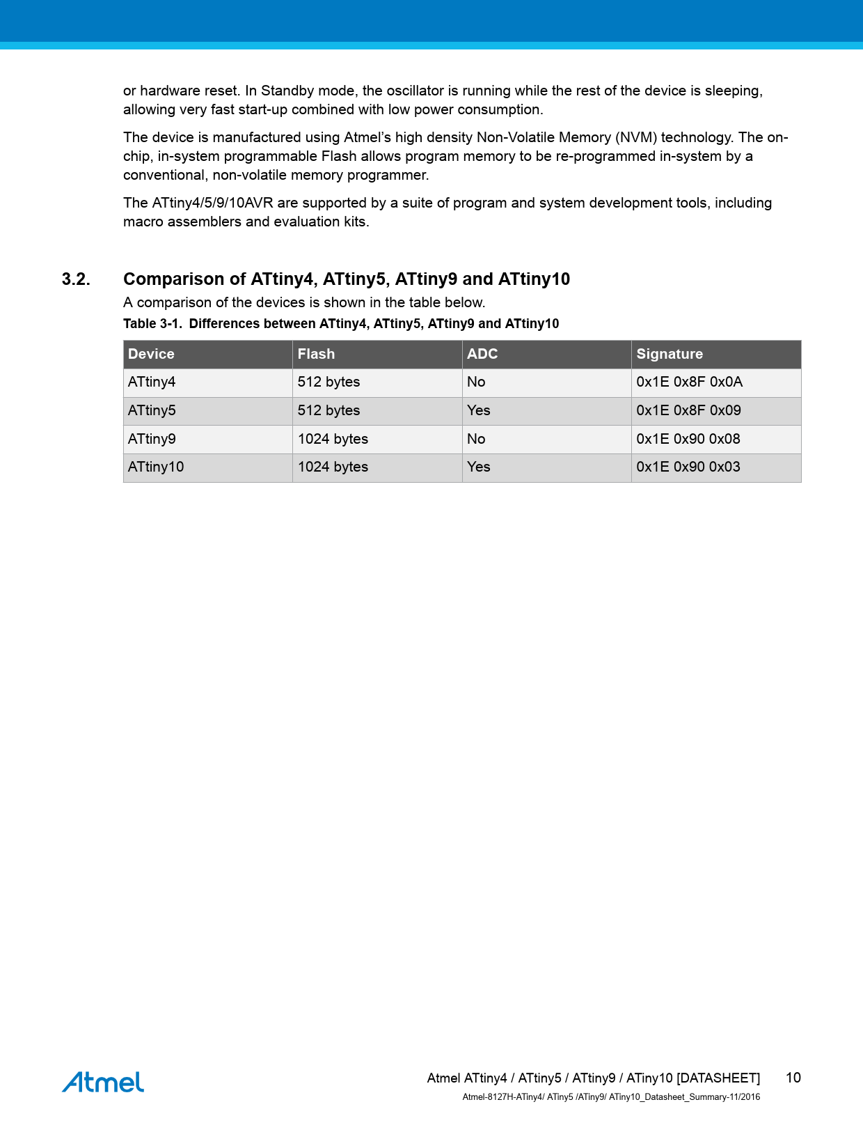 Páginas / Página17 / 10 — 3.2. Comparison of ATtiny4, ATtiny5, ATtiny9 and ATtiny10