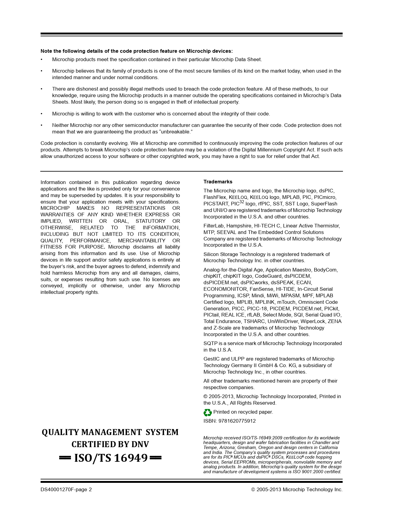 Note the following details of the code protection feature on Microchip devices:. Trademarks. QUALITY MANAGEMENT SYSTEM