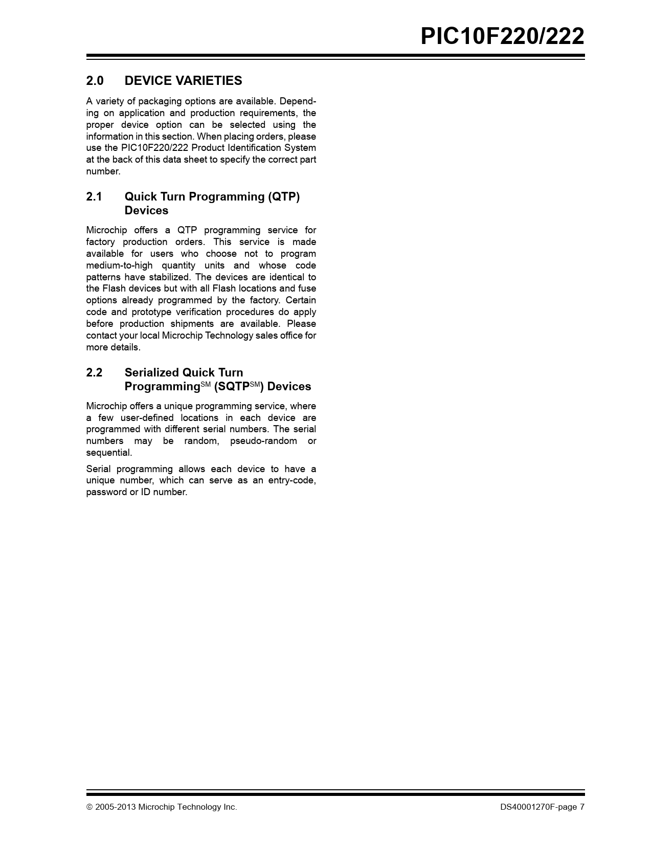 PIC10F220/222. 2.0. DEVICE VARIETIES. 2.1. Quick Turn Programming (QTP) Devices. 2.2. Serialized Quick Turn Programming. (SQTP