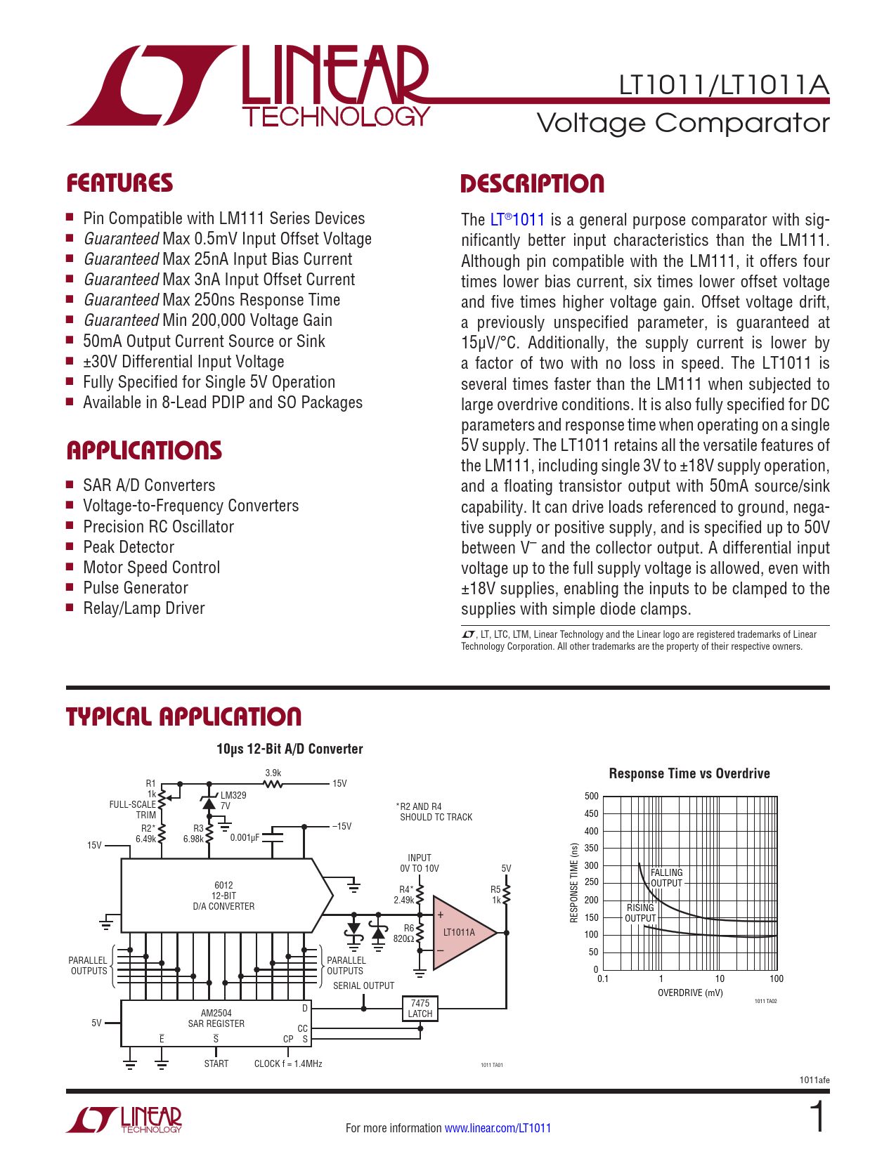 Datasheet LT1011, LT1011A Analog Devices
