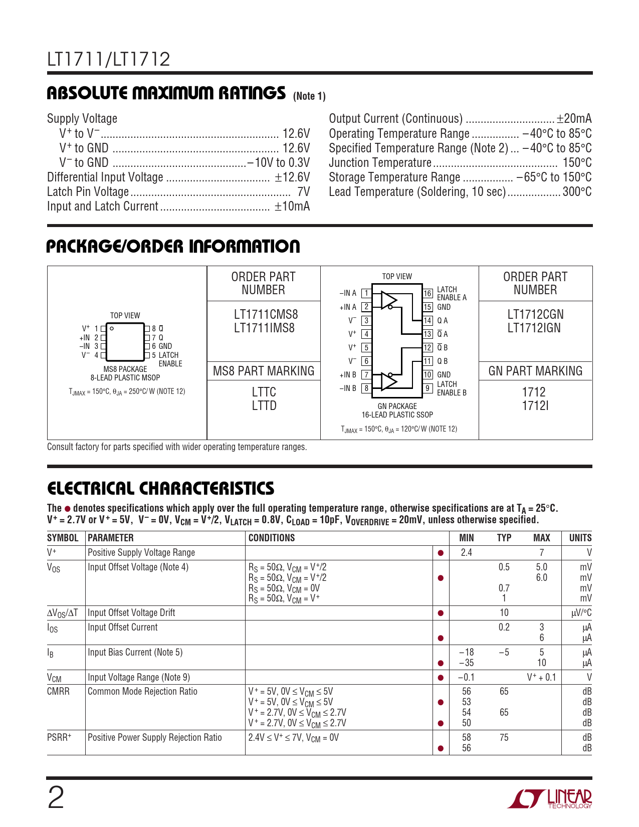 Datasheet LT1711, LT1712 (Analog Devices) - 2
