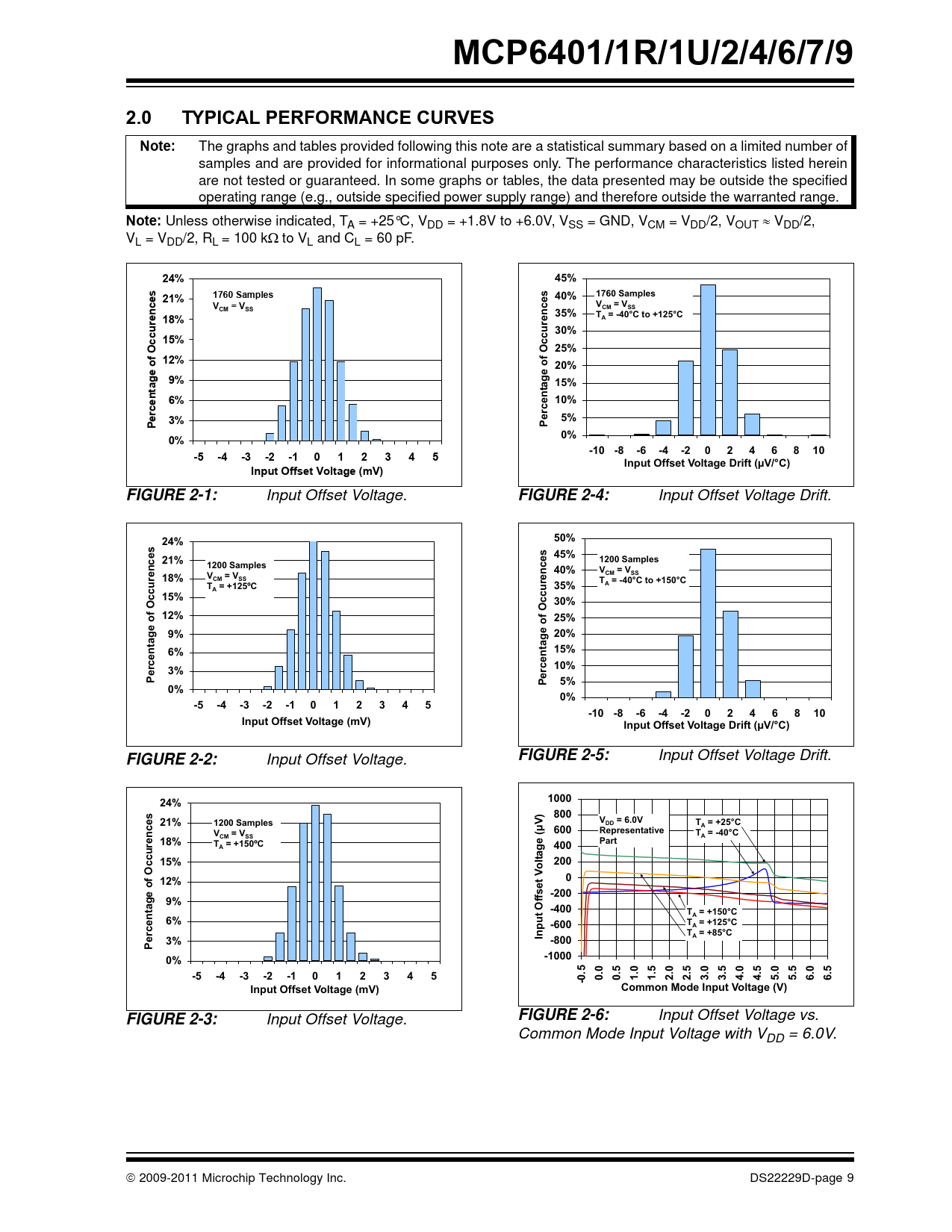 MCP6401/1R/1U/2/4/6/7/9. 2.0. TYPICAL PERFORMANCE CURVES. Note:. 24%. 45%. 21%. 1760 Samples. 40%. ces. = V. CM = VSS. 18%. 35%