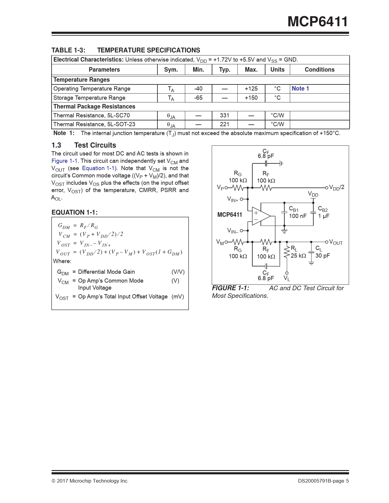 Note 1 Thermal Package Resistances Note 1: 1.3 The internal junction temperature (TJ) must not exceed the absolute maximum specification of +150°C. Test Circuits The circuit used for most DC and AC tests is shown in
