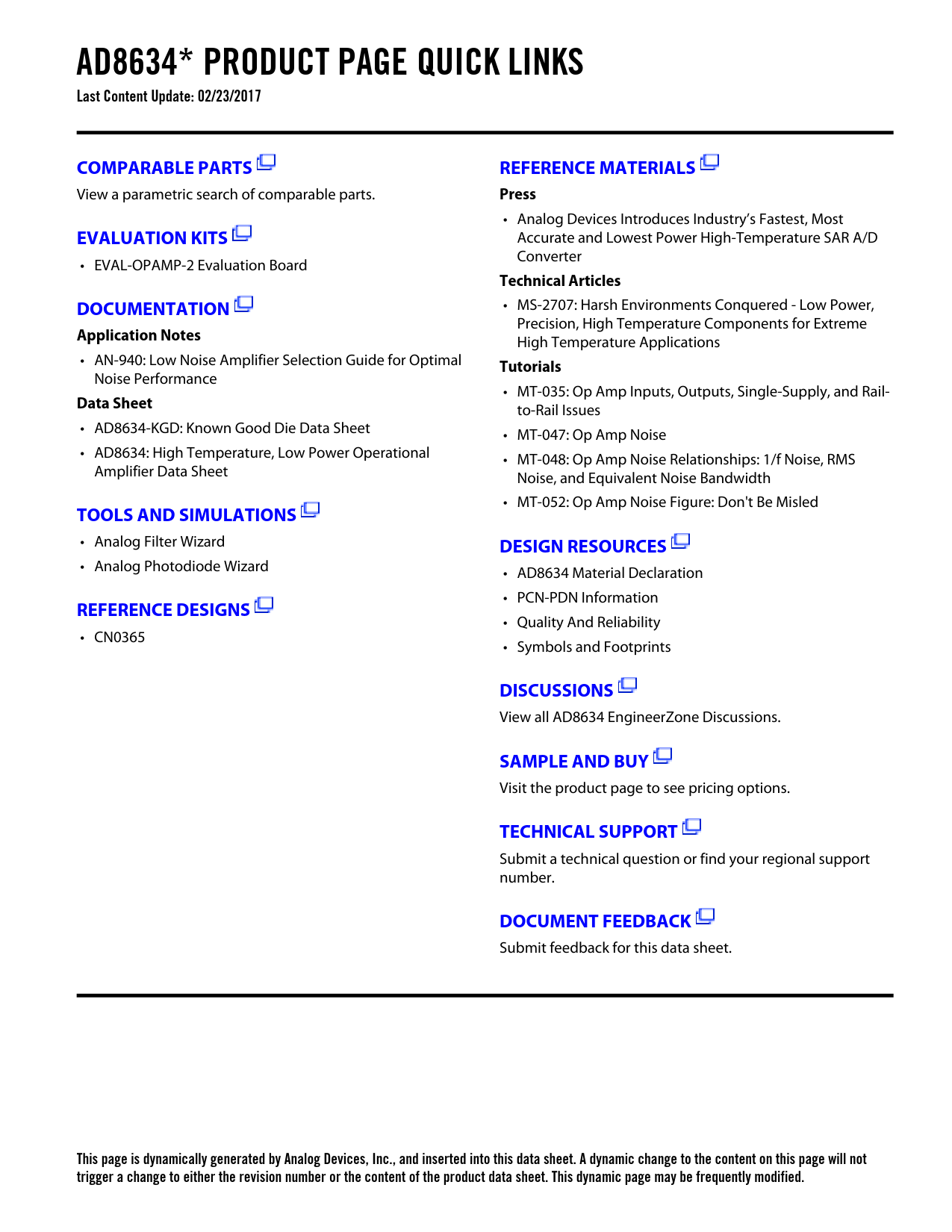 • Analog Photodiode Wizard • AD8634 Material Declaration • PCN-PDN Information