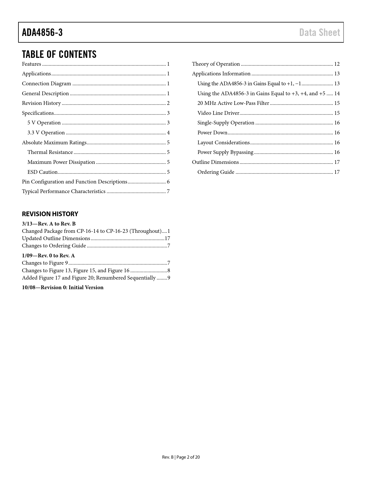 Páginas / Página21 / 3 — ADA4856-3. Data Sheet. TABLE OF CONTENTS. REVISION HISTORY 3/13—Rev. A to …