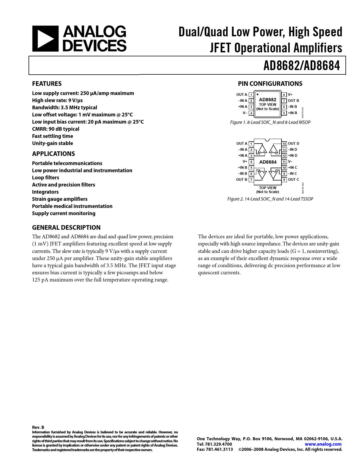 Datasheet AD8682, AD8684 (Analog Devices)
