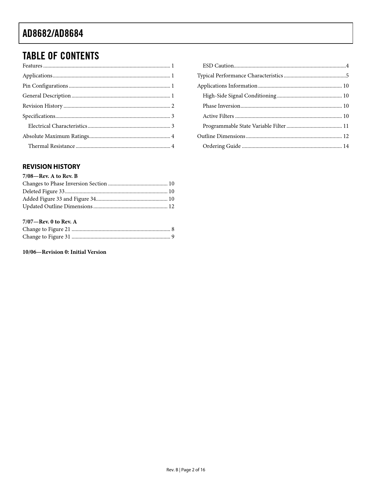 AD8682/AD8684. TABLE OF CONTENTS. REVISION HISTORY. 7/08—Rev. A to Rev. B. 7/07—Rev. 0 to Rev. A