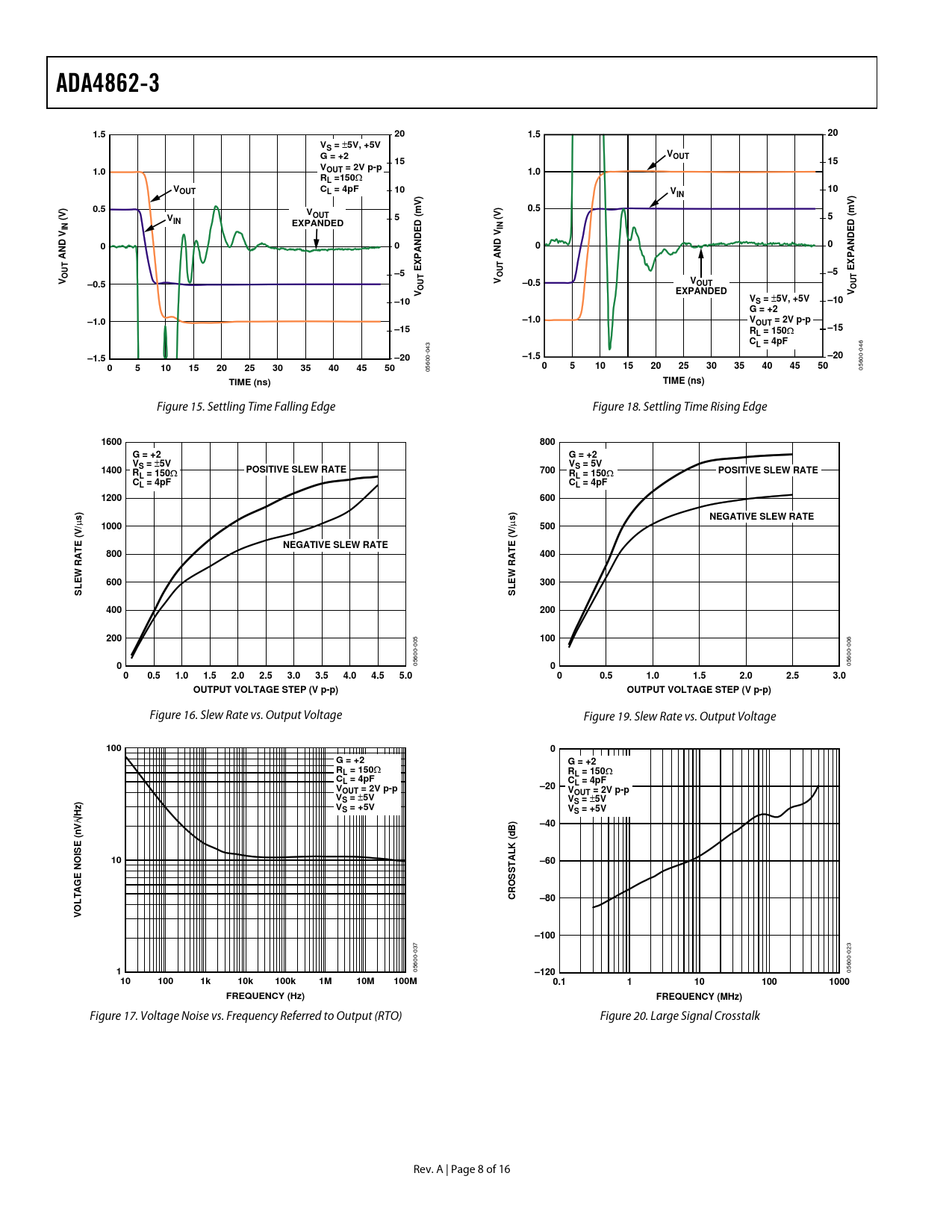 ADA4862-3. 1.5. VS =. 5V, +5V G = +2. VOUT. 1.0. OUT = 2V p-p. RL =150. OUT. L = 4pF. ) V. 0.5. (V). EXPANDED. D (mV. D (m. ANDE. AND V. AND V T. –0.5. –10