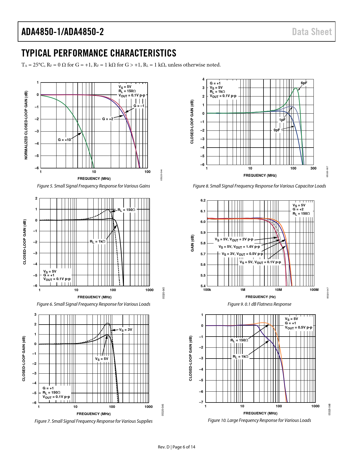 ADA4850-1/ADA4850-2. Data Sheet. TYPICAL PERFORMANCE CHARACTERISTICS. G = +1. 6pF. VS = 5V. RL = 150. RL = 1k. VOUT = 0.1V p-p. ) B d
