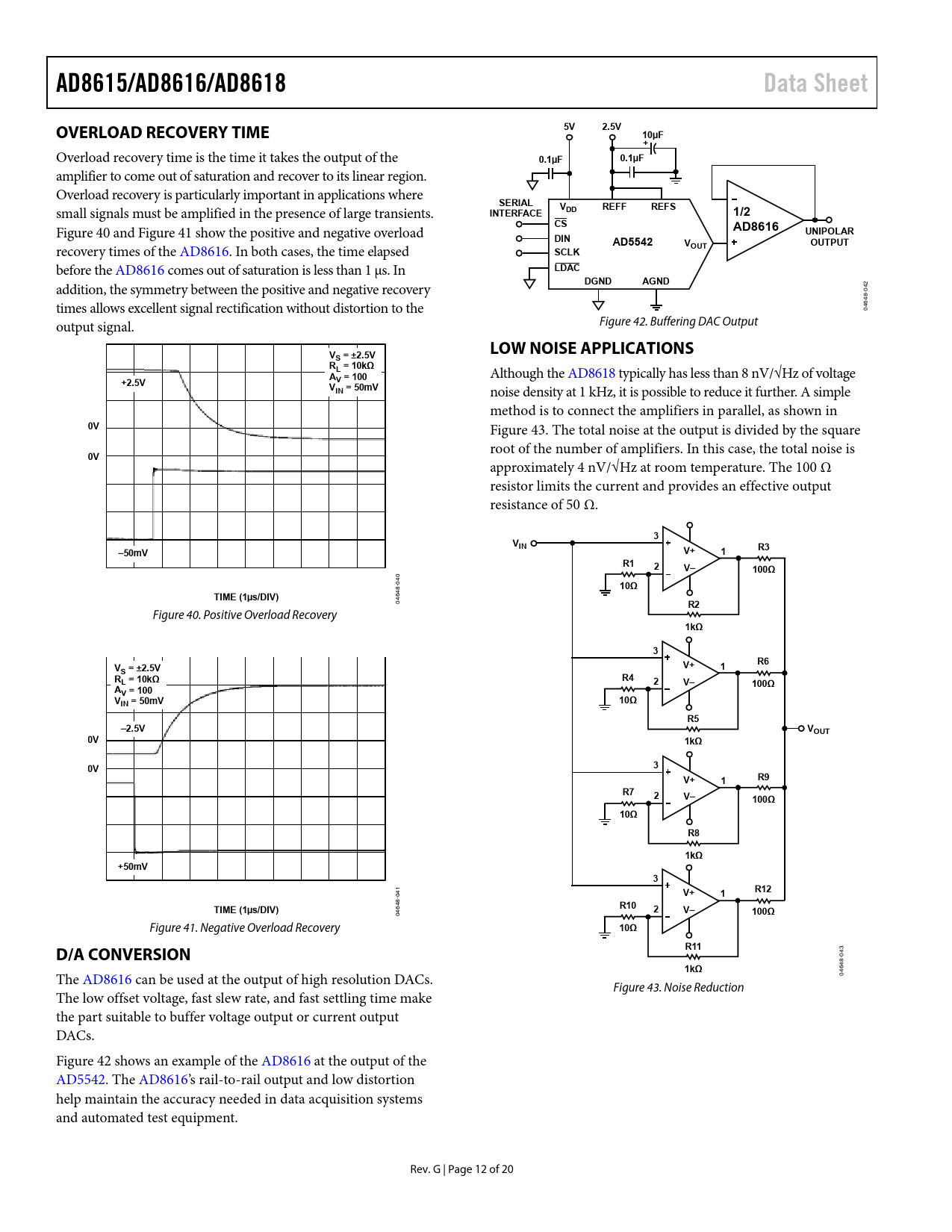 AD8615/AD8616/AD8618. Data Sheet. OVERLOAD RECOVERY TIME. 2.5V. 10µF. 0.1µF. SERIAL. REFF. REFS. INTERFACE. 1/2. AD8616. UNIPOLAR. DIN. AD5542