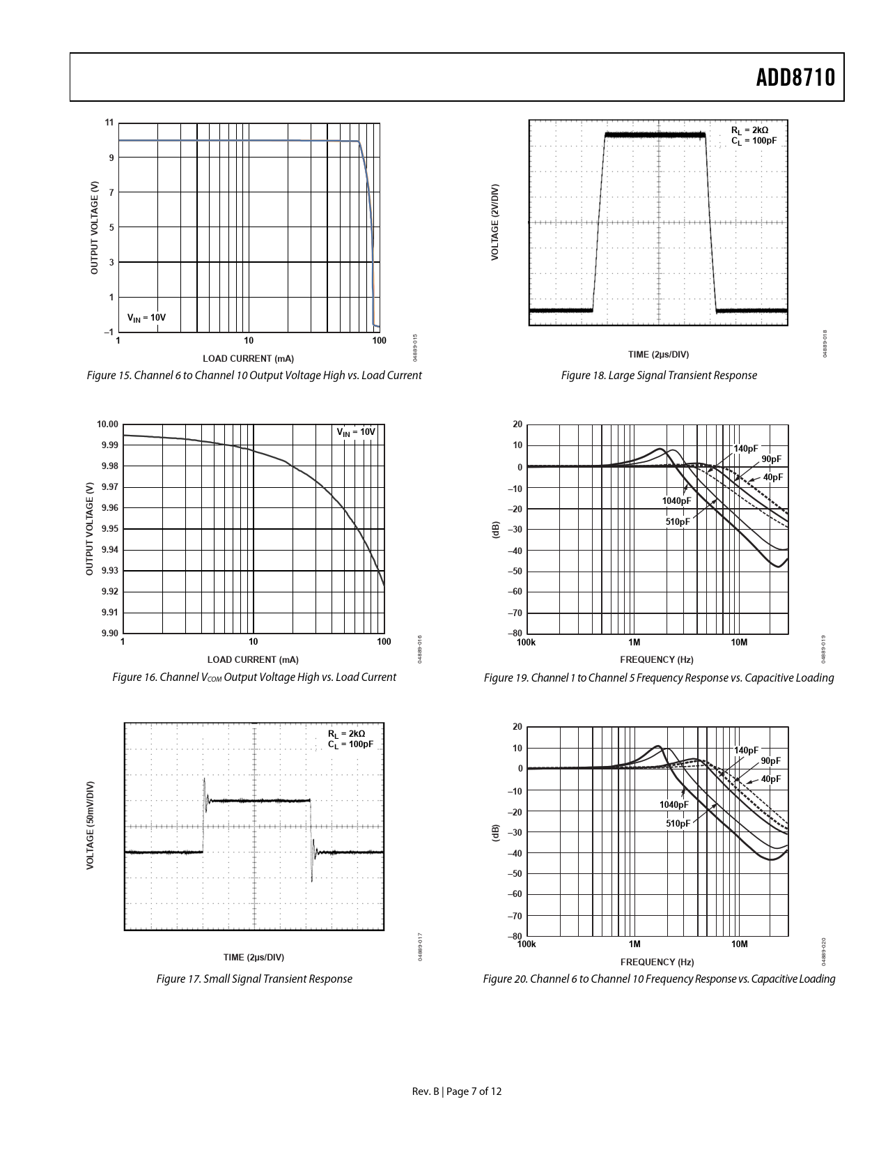ADD8710. RL = 2kΩ. CL = 100pF. ) (V. IV) D. 2V/. LTA O. E ( G. V T U. LTA. P T. VIN = 10V. 100. LOAD CURRENT (mA). TIME (2µs/DIV). 10.00. 9.99. 140pF. 90pF