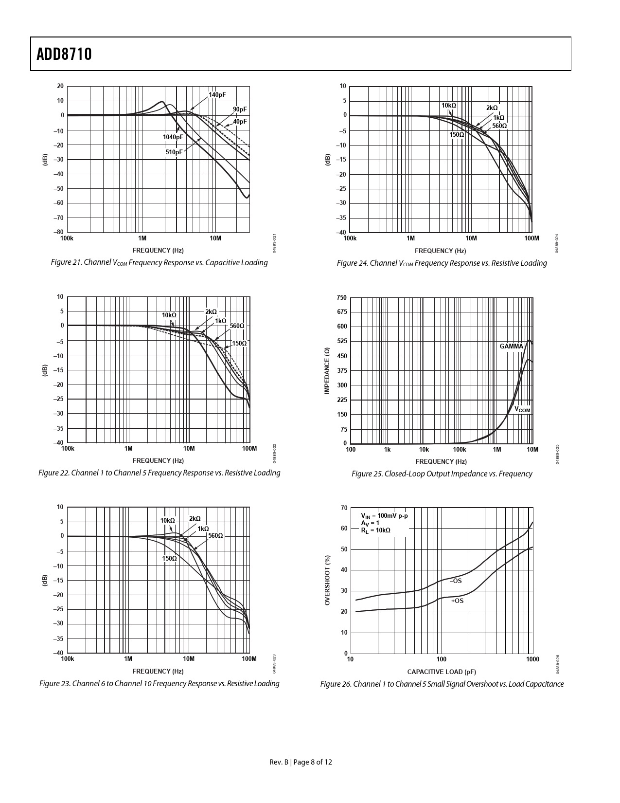 | Páginas / Página | 13 / 9 — ADD8710. 140pF. 10kΩ. 90pF. 2kΩ. 1kΩ. 40pF. 560Ω. –10. 1040pF. 150Ω. –20. … |