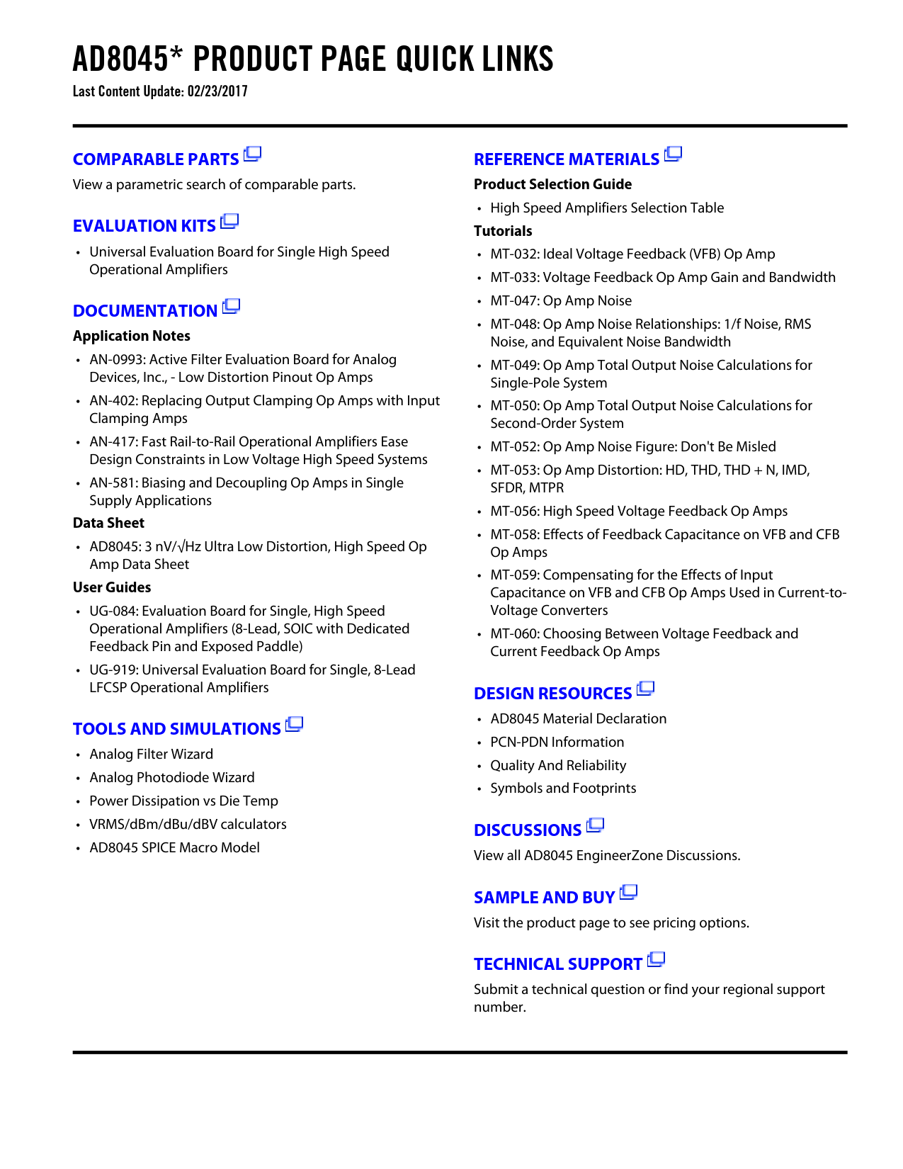 Páginas / Página26 / 2 — AD8045* PRODUCT PAGE QUICK LINKS Last Content Update: 02/23/2017. …