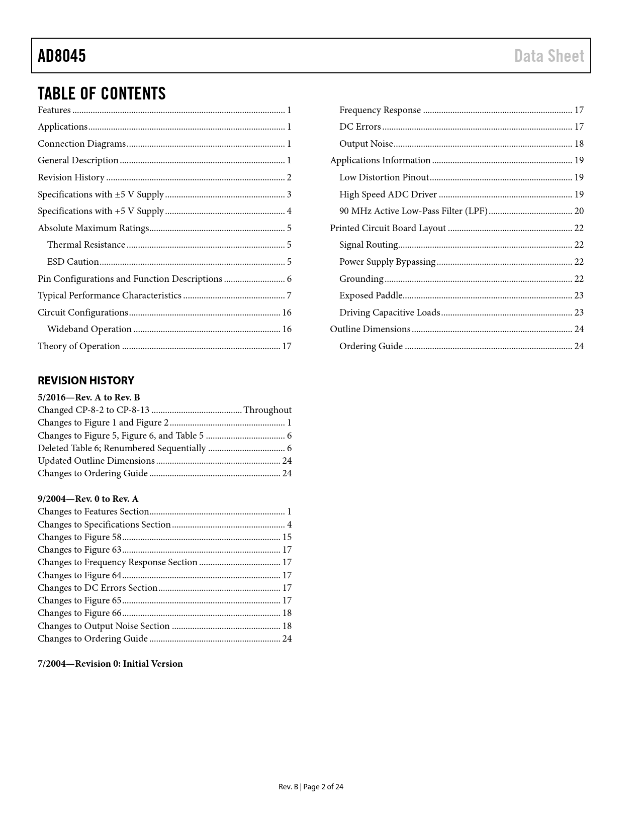 AD8045 Data Sheet TABLE OF CONTENTS REVISION HISTORY 5/2016—Rev A to Rev B 9/2004—Rev 0 to Rev A