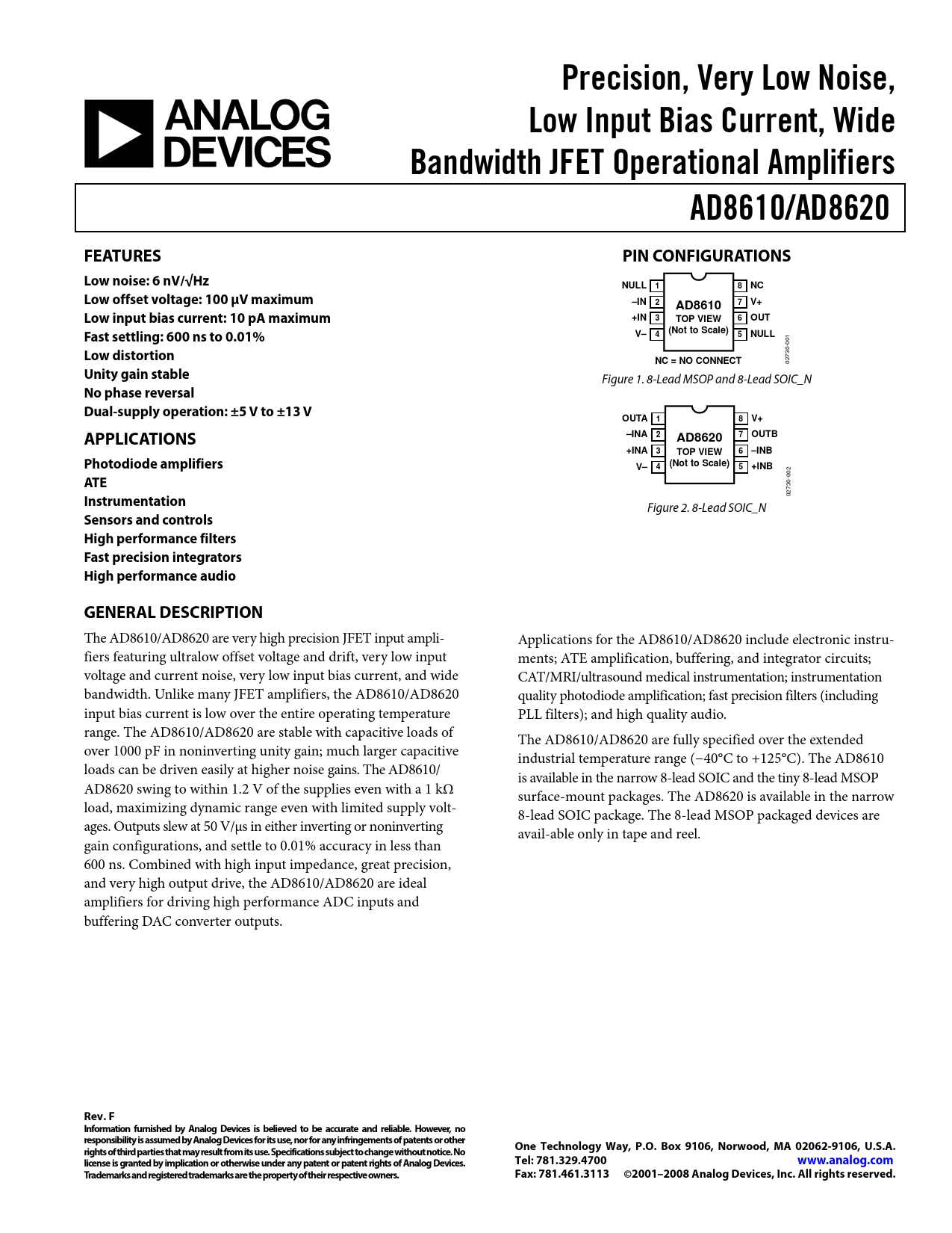 Datasheet AD8610, AD8620 (Analog Devices)