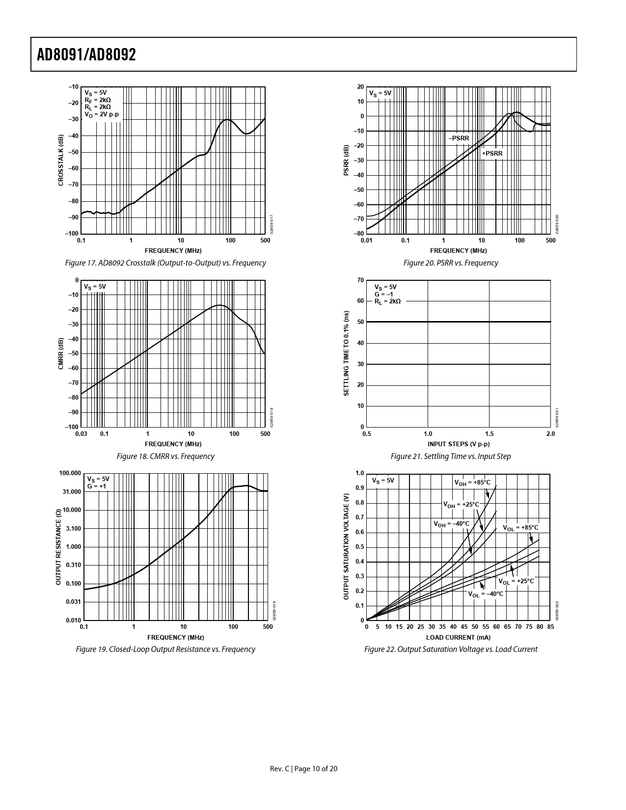 AD8091/AD8092. –10. VS = 5V. –20 RF = 2kΩ. RL = 2kΩ. VO = 2V p-p. –30. –40. –PSRR. –20. K ( –50. B) d. +PSRR. TAL. R ( –30. S –60. S P –40. CRO –70. –50. –80