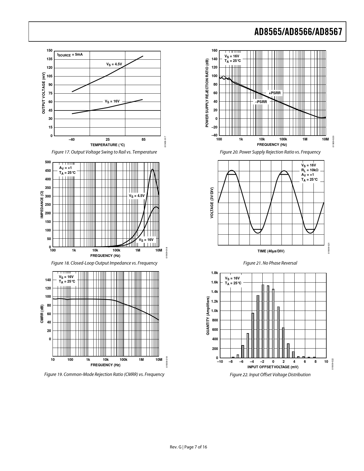 AD8565/AD8566/AD8567. 150. 160. ISOURCE = 5mA. VS = 16V. 135. ) 140. TA = 25°C. S = 4.5V. 120. TIO (. A 100. m 105. N R. CT JE. +PSRR. OLTA. T V U. –PSRR