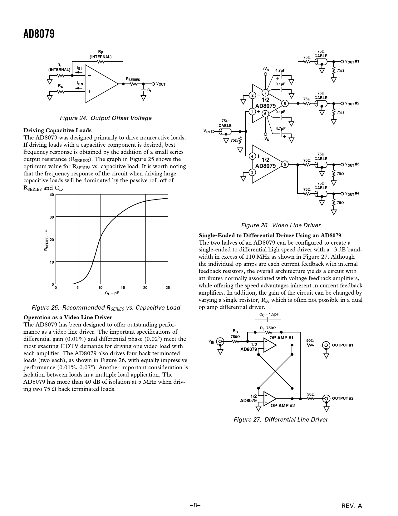 AD8079 CABLE ( INTERNAL) VOUT #1 I BI 4.7µF RSERIES I BN VOUT 0.1µF 1/2 VOUT #2 Driving Capacitive Loads VIN –VS VOUT #3 OUT #4