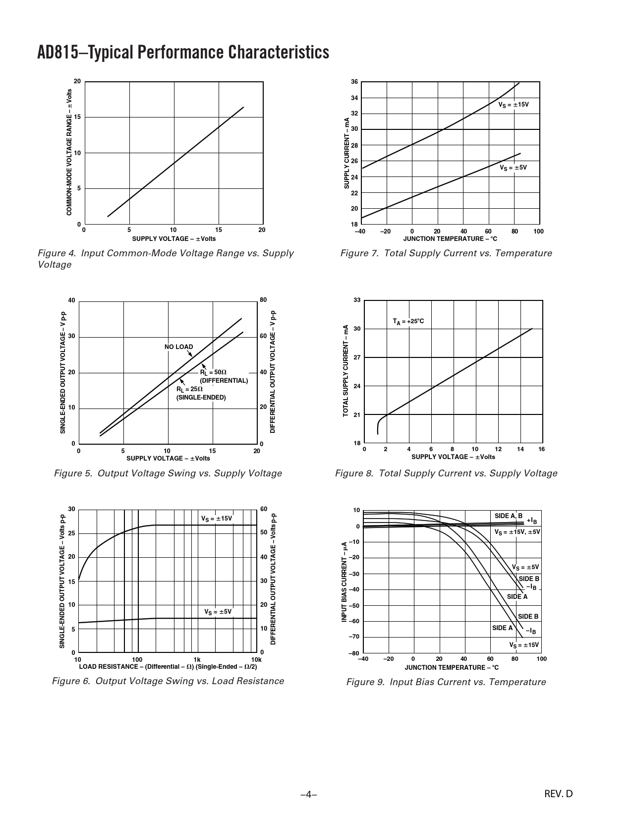 AD815–Typical Performance Characteristics Volts S = 15V VS = SUPPLY CURRENT – mA COMMON-MODE VOLTAGE RANGE – –40 –20 100