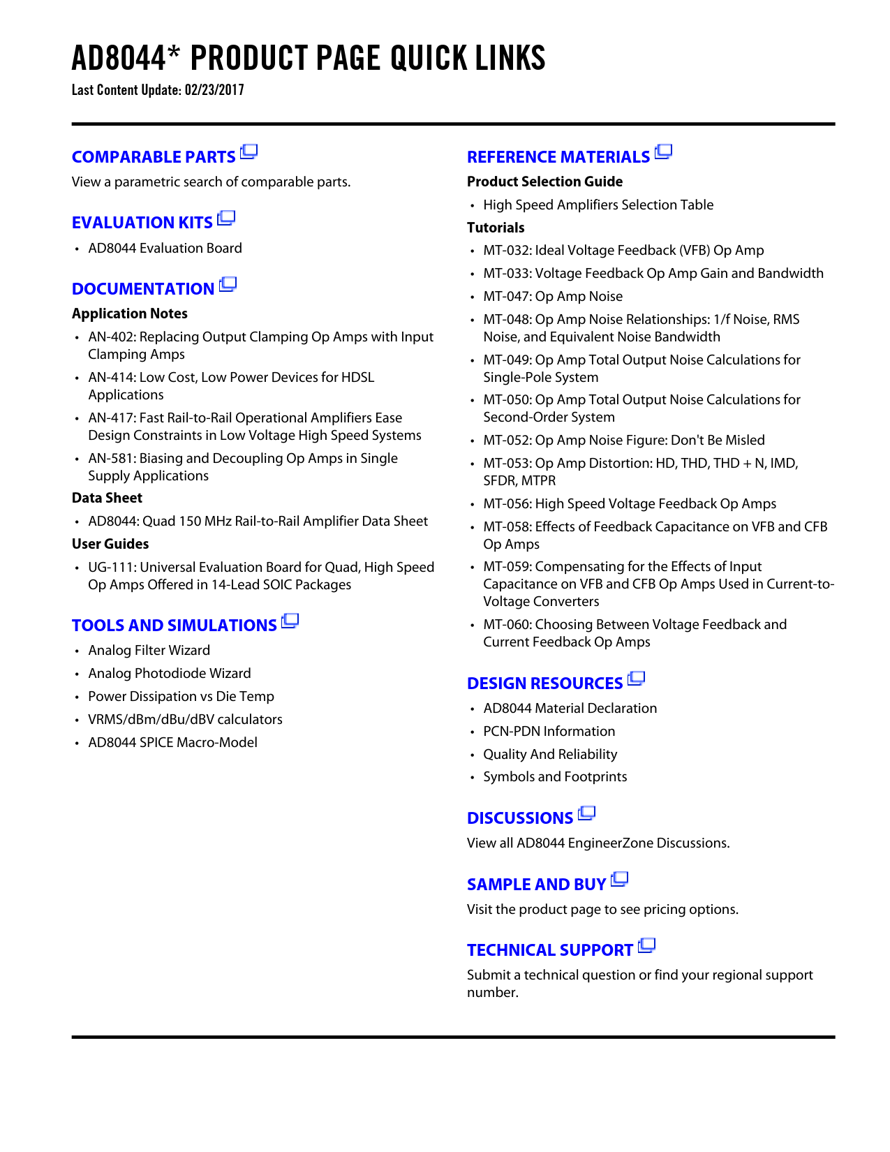 AD8044* PRODUCT PAGE QUICK LINKS Last Content Update: 02/23/2017 COMPARABLE PARTS REFERENCE MATERIALS