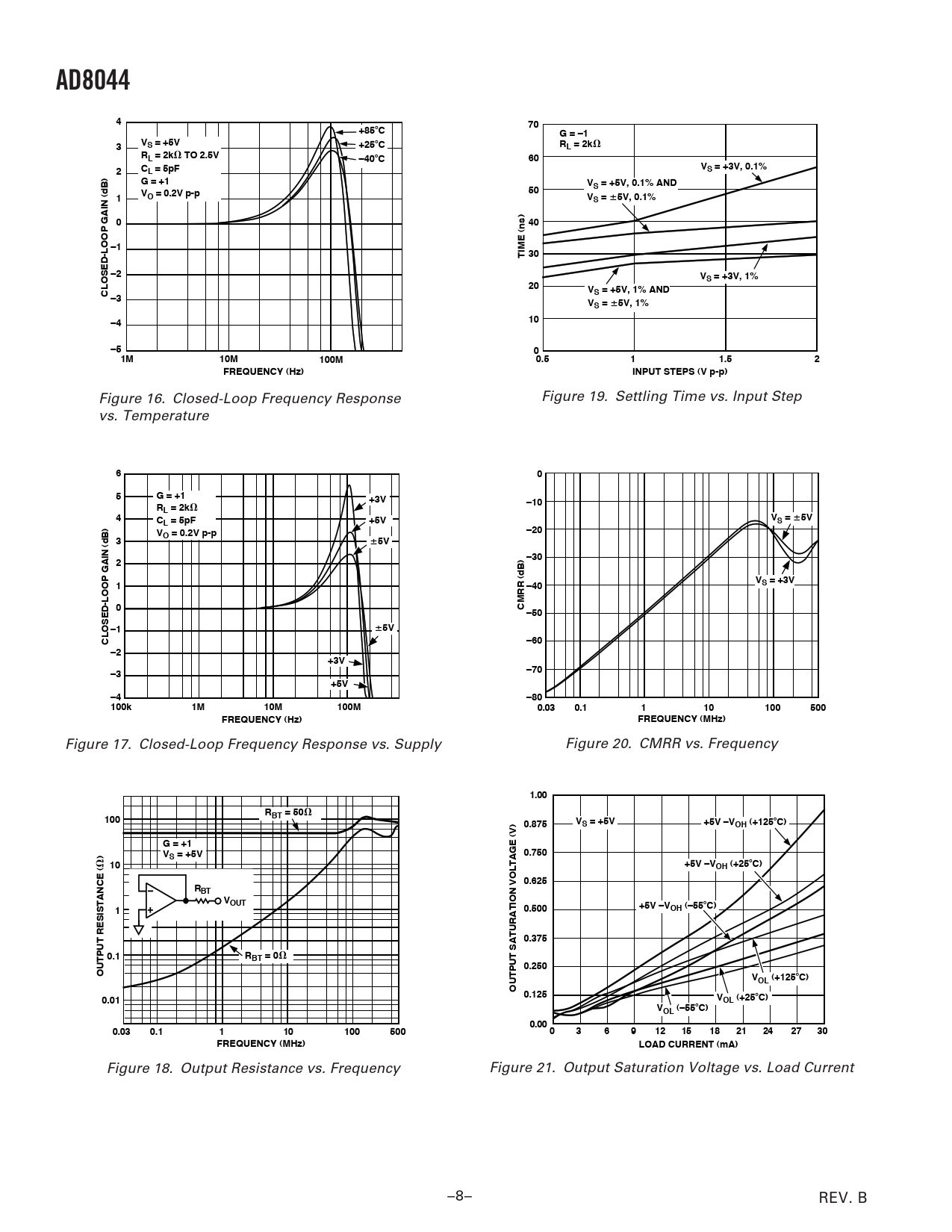Figure 16. Closed-Loop Frequency Response Figure 19. Settling Time vs. Input Step vs. Temperature