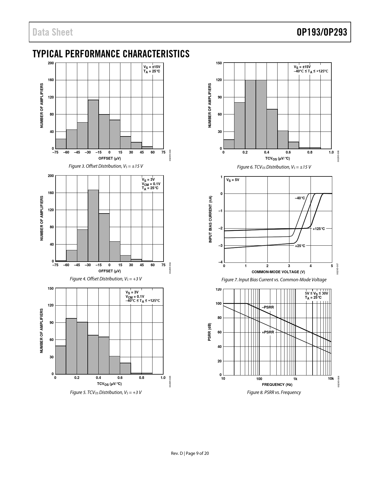 Data Sheet. OP193/OP293. TYPICAL PERFORMANCE CHARACTERISTICS. 200. 150. VS = ±15V. TA = 25°C. –40°C ≤ TA ≤ +125°C. 160. 120. R O. NUM. –75. –60