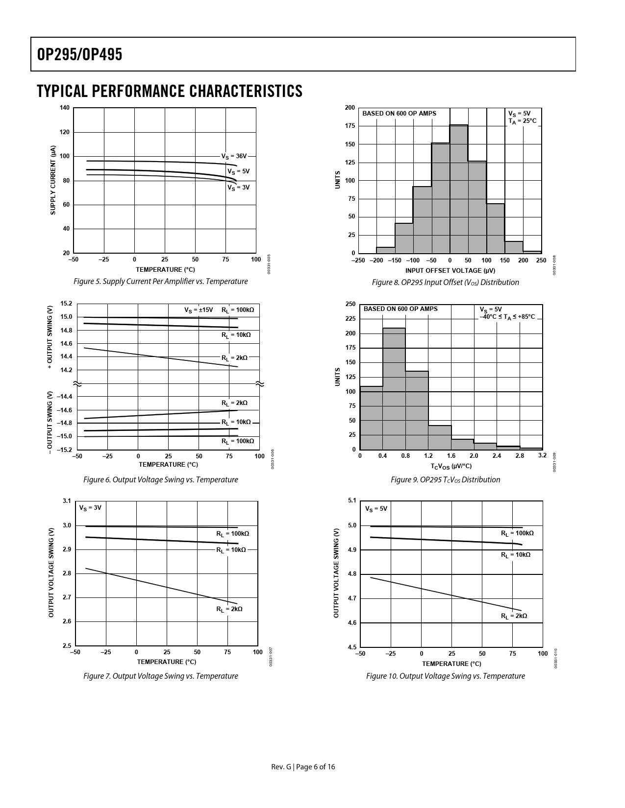 33 00 Figure 6. Output Voltage Swing vs. Temperature Figure 9. OP295 TCVOS Distribution