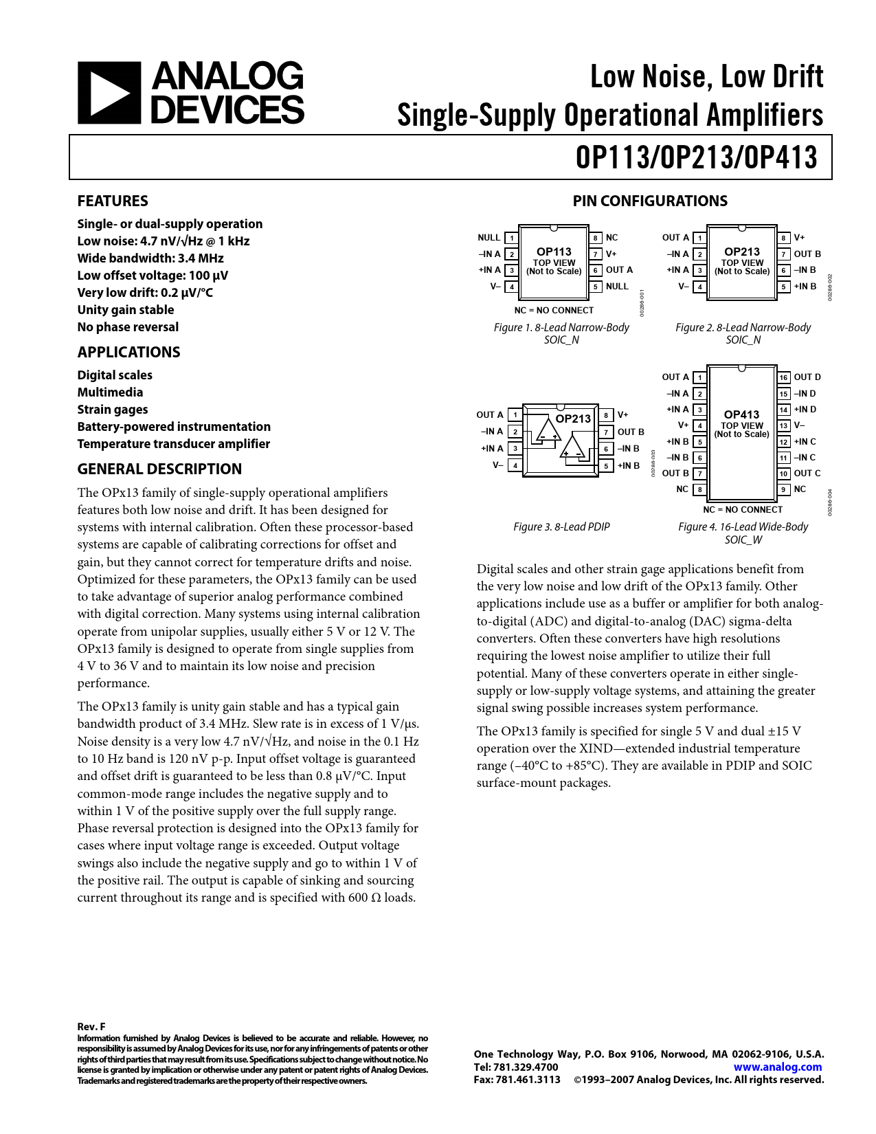 Datasheet OP113, OP213, OP413 (Analog Devices)