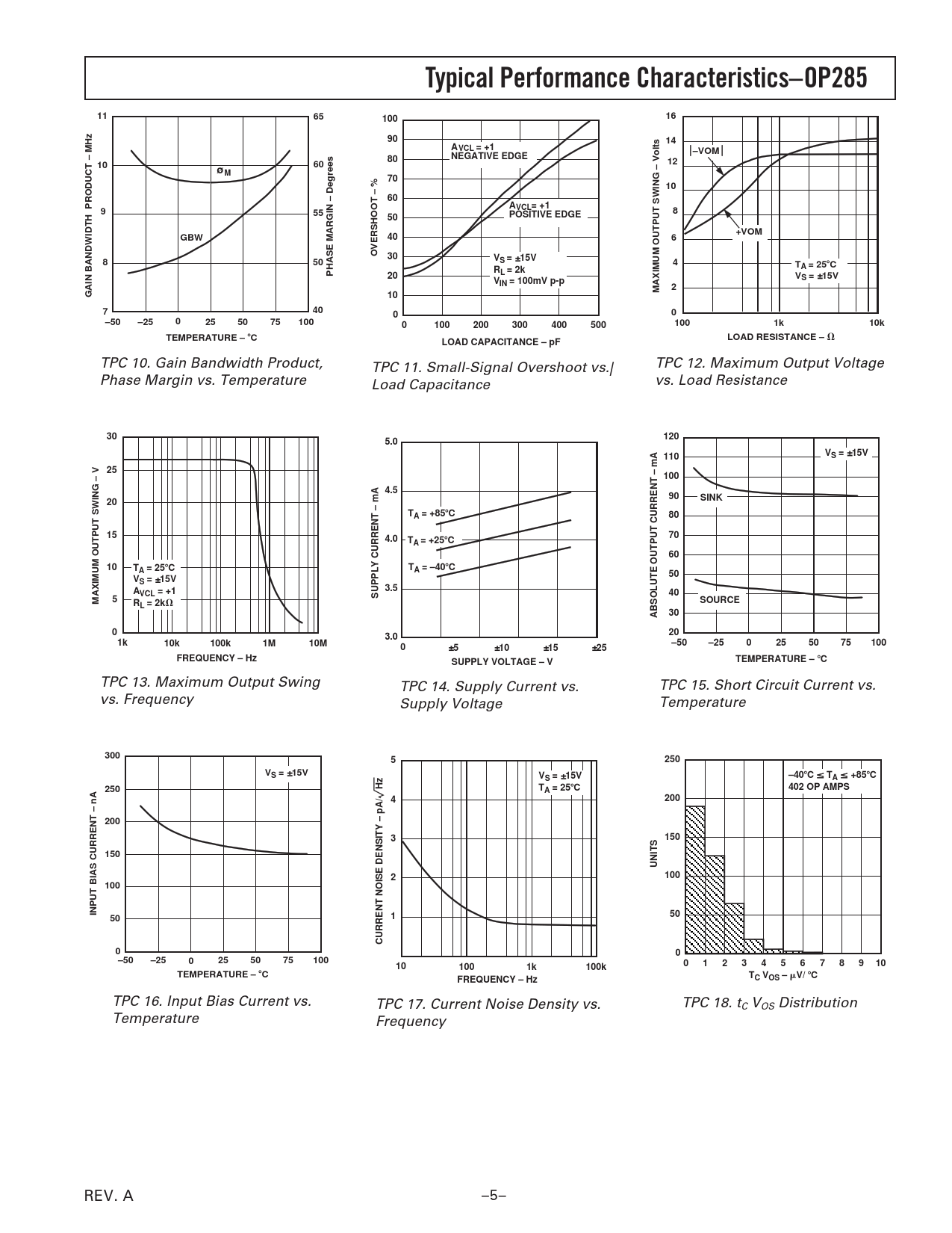 TPC 16. Input Bias Current vs. TPC 17. Current Noise Density vs. TPC 18. tC VOS Distribution Temperature Frequency REV. A –5–