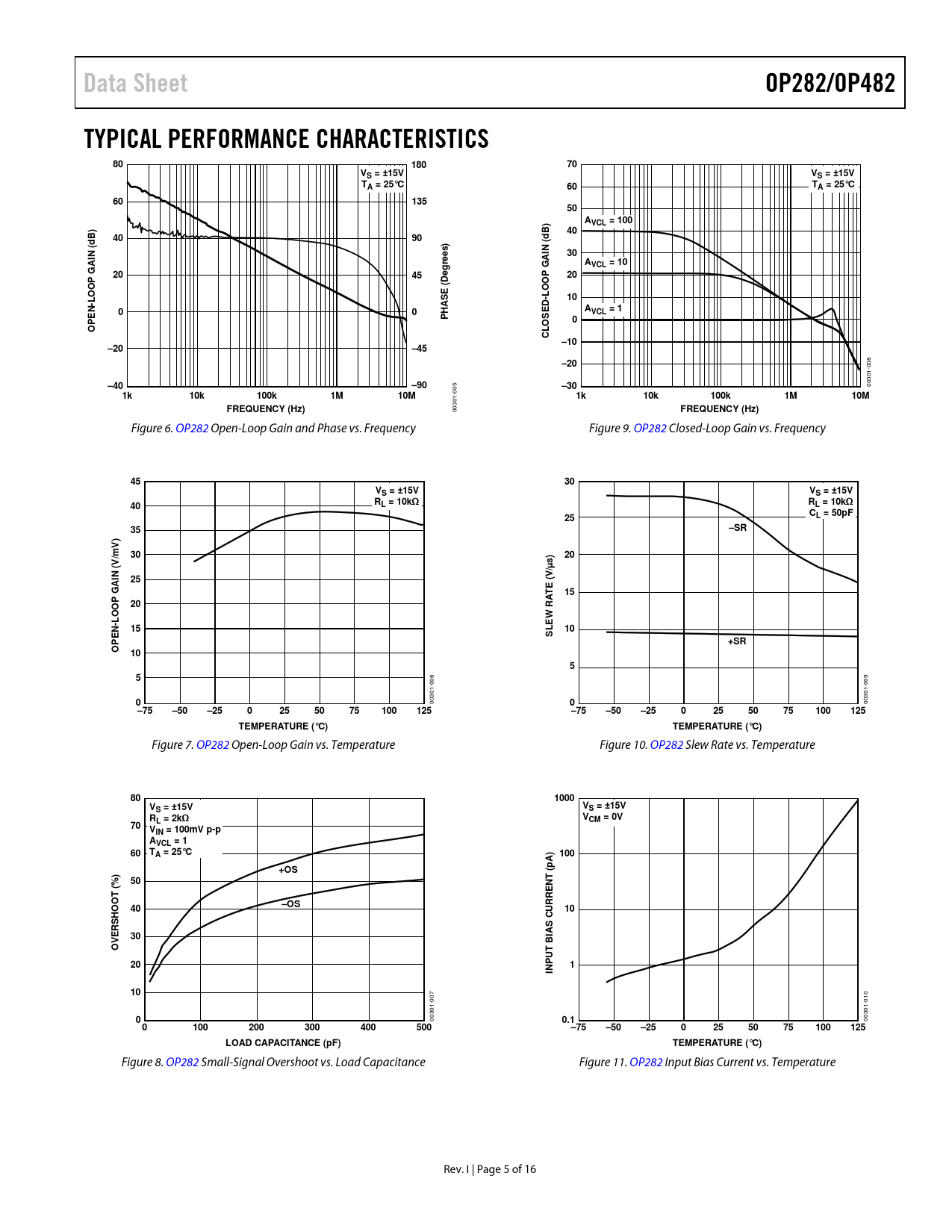 Data Sheet. OP282/OP482. TYPICAL PERFORMANCE CHARACTERISTICS. 180. VS = ±15V. TA = 25°C. 135. AVCL = 100. N (. rees). VCL = 10. Deg. -LOO. HAS