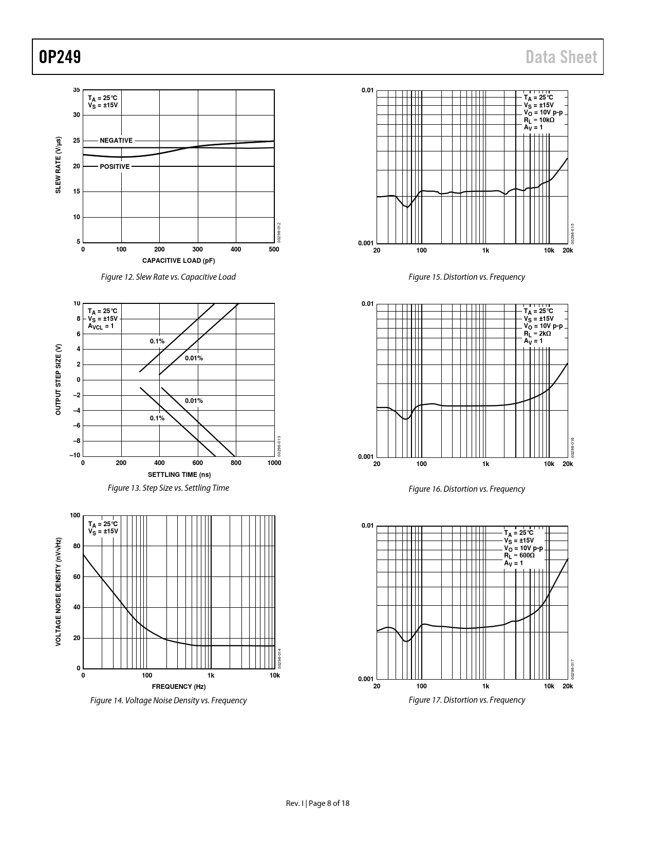 OP249. Data Sheet. 0.01. TA = 25°C. VS = ±15V. VO = 10V p-p RL = 10kΩ AV = 1. ) s. NEGATIVE. E (V/ T A. POSITIVE. EW SL. 0.001. 100. 200. 300. 400. 500