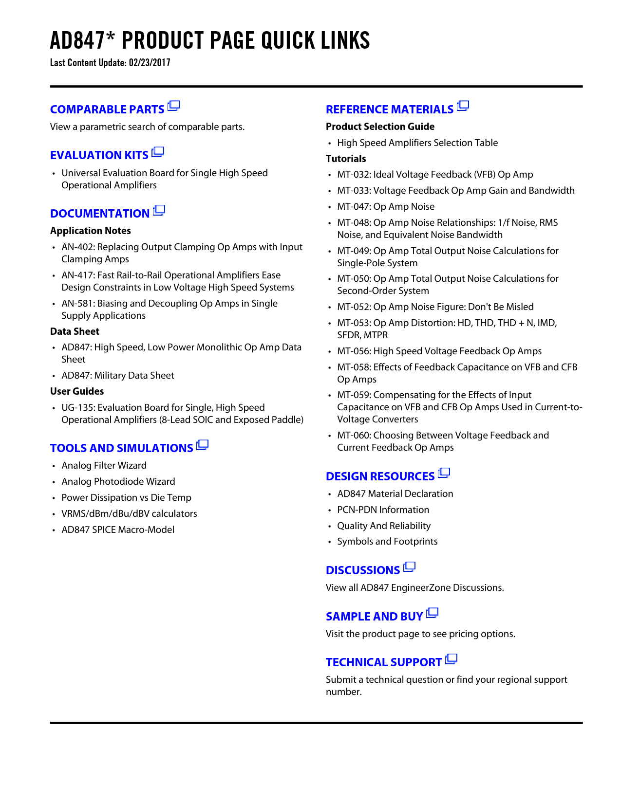 AD847* PRODUCT PAGE QUICK LINKS Last Content Update: 02/23/2017. COMPARABLE PARTS. REFERENCE MATERIALS