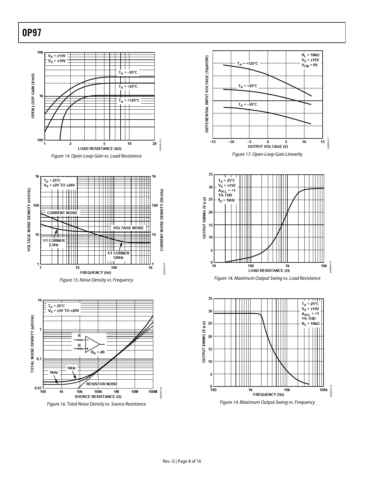 | Páginas / Página | 17 / 9 — OP97. 10k. S = ±15V. L = 10kΩ. IV). O = ±10V. TA = +125°C. VCM = 0V. TA = … |