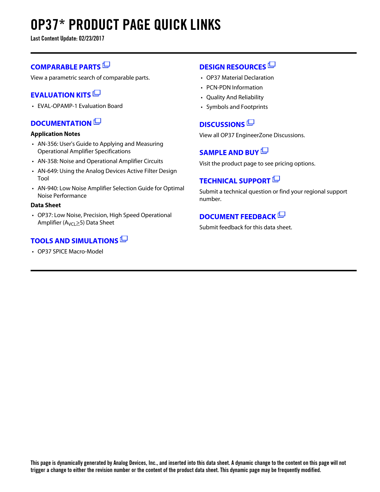 OP37* PRODUCT PAGE QUICK LINKS Last Content Update: 02/23/2017 COMPARABLE PARTS DESIGN RESOURCES