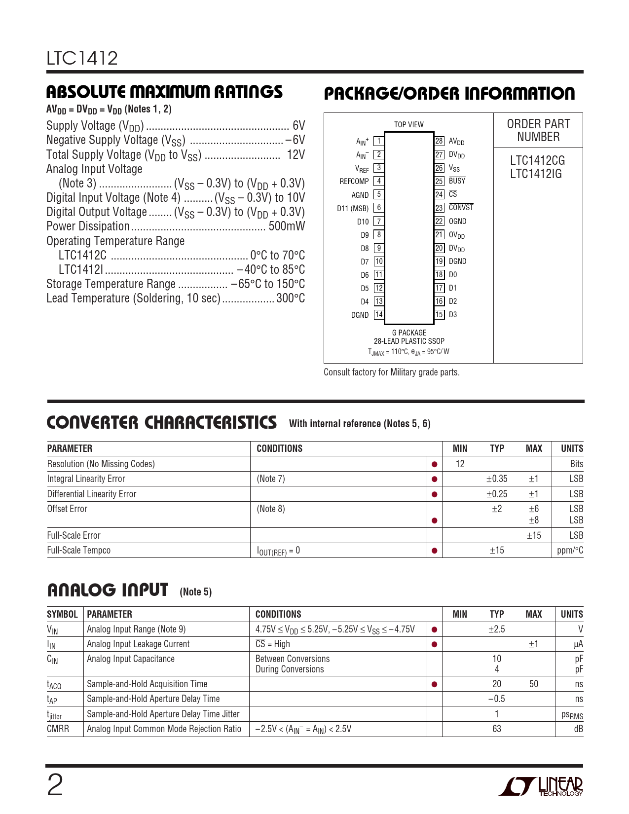 ABSOLUTE MAXIMUM RATINGS PACKAGE/ORDER INFORMATION AVDD = DVDD = VDD (Notes 1, 2) CO VERTER