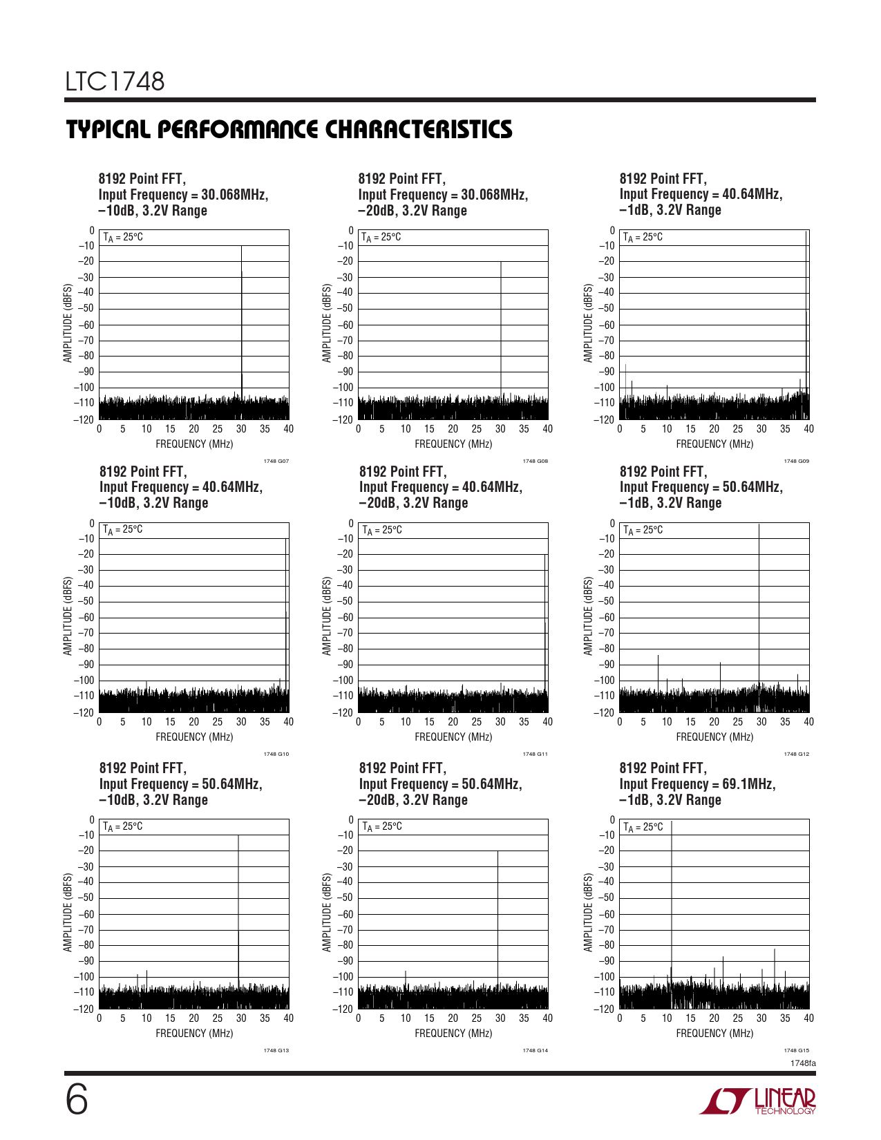0 0 0 TA = 25°C TA = 25°C TA = 25°C –10 –10 –10 –20 –20 –20 –30 –30 –30 –40 –40 –40 –50 –50 –50 –60 –60 –60 –70 –70 –70 AMPLITUDE (dBFS) –80 AMPLITUDE (dBFS) –80 AMPLITUDE (dBFS) –80 –90 –90 –90 –100 –100 –100 –110 –110 –110 –120 –120 –120 0 5 10 15 20 25 30 35 40 0 5 10 15 20 25 30 35 40 0 5 10 15 20 25 30 35 40 FREQUENCY (MHz) FREQUENCY (MHz) FREQUENCY (MHz) 1748 G13 1748 G14 1748 G15 1748fa 6