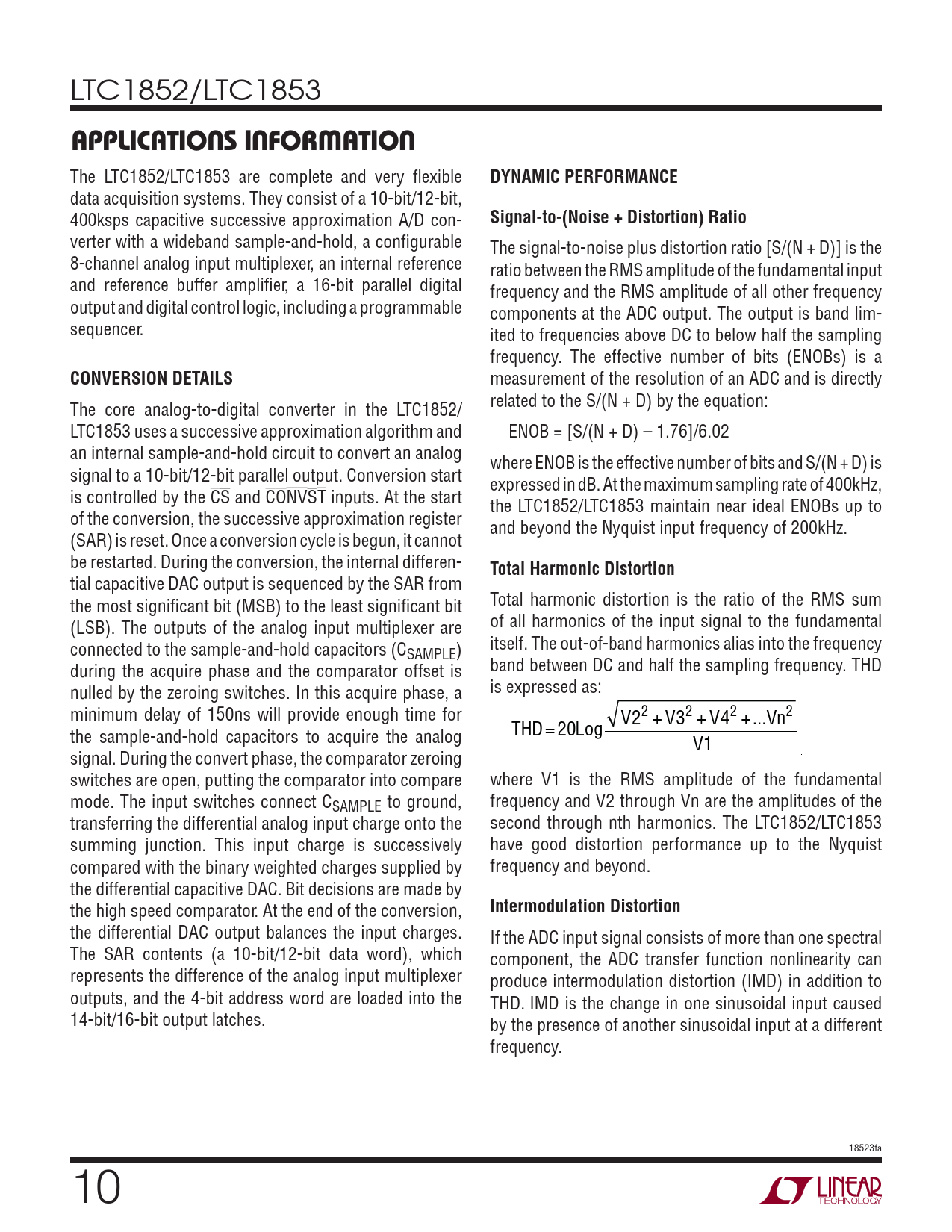 APPLICATIONS INFORMATION DYNAMIC PERFORMANCE Signal-to-(Noise + Distortion) Ratio CONVERSION DETAILS