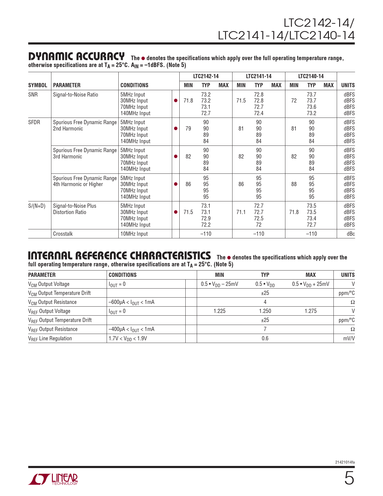Datasheet LTC2142-14, LTC2141-14, LTC2140-14 (Analog Devices) - 5