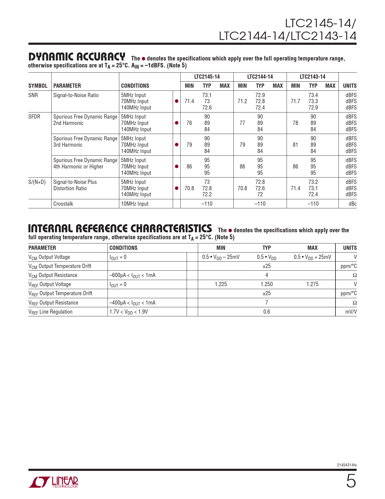 Datasheet LTC2145-14, LTC2144-14, LTC2143-14 (Analog Devices) - 5