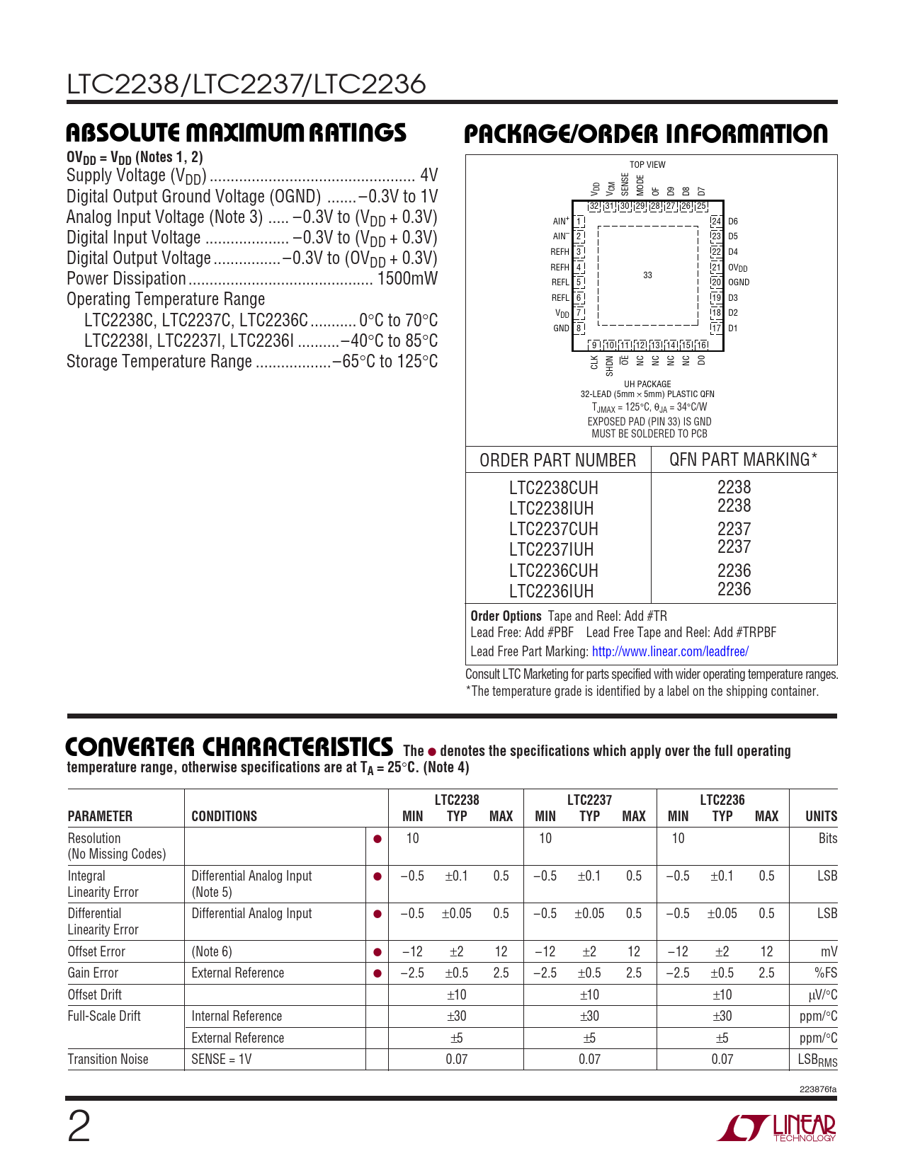 Datasheet LTC2238, LTC2237, LTC2236 (Analog Devices) - 2