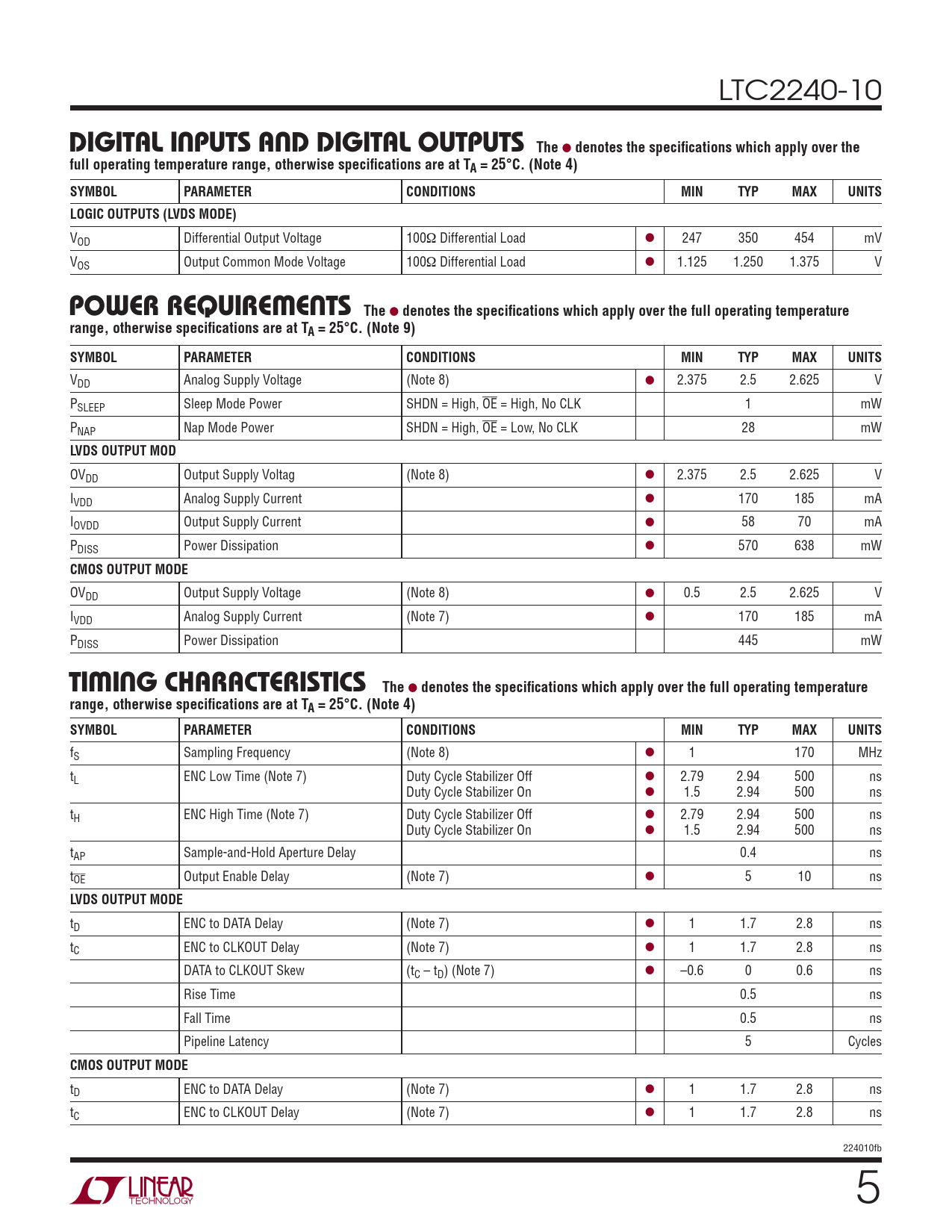 Datasheet LTC2240-10 (Analog Devices) - 5