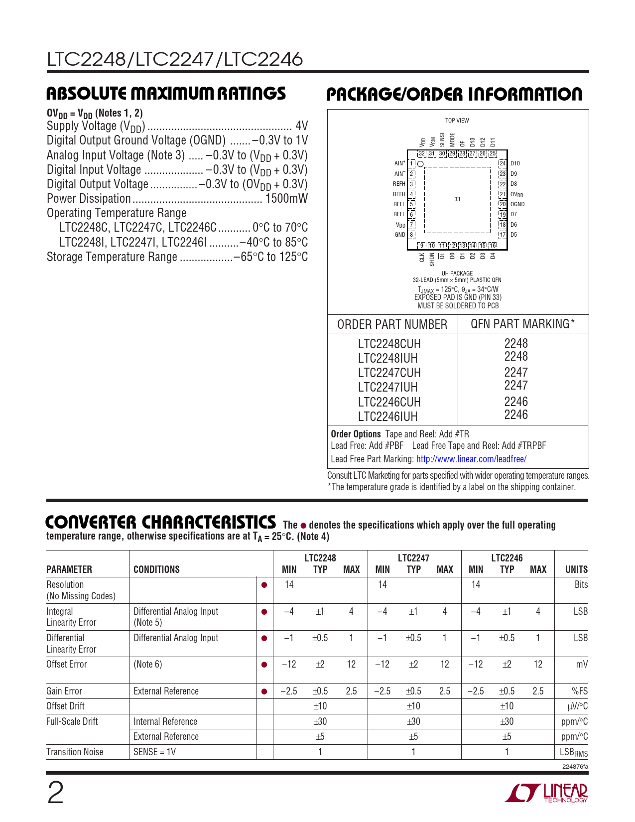 Datasheet LTC2248, LTC2247, LTC2246 (Analog Devices) - 2