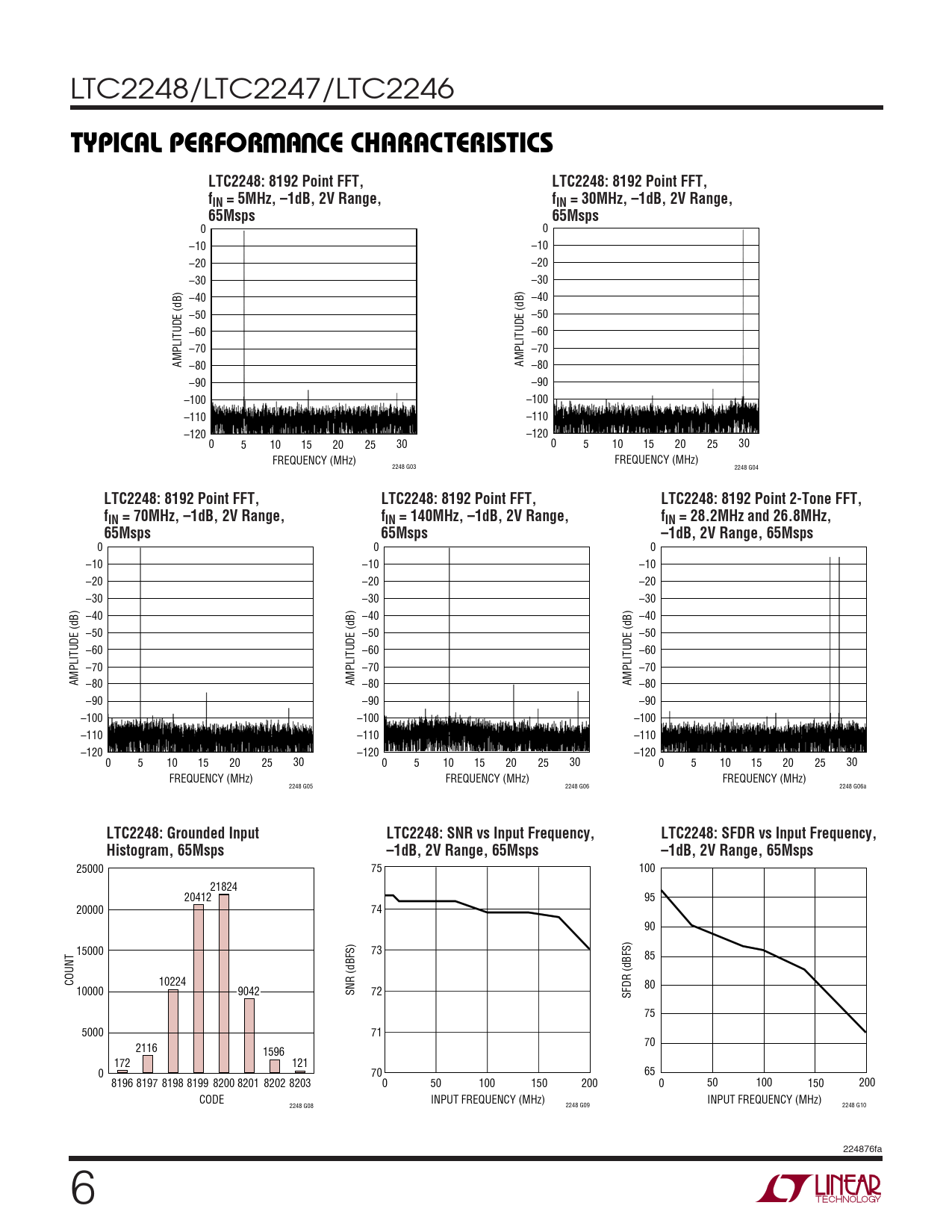 | Páginas / Página | 24 / 6 — TYPICAL PERFOR A CE CHARACTERISTICS. LTC2248: 8192 Point FFT,. fIN = … |